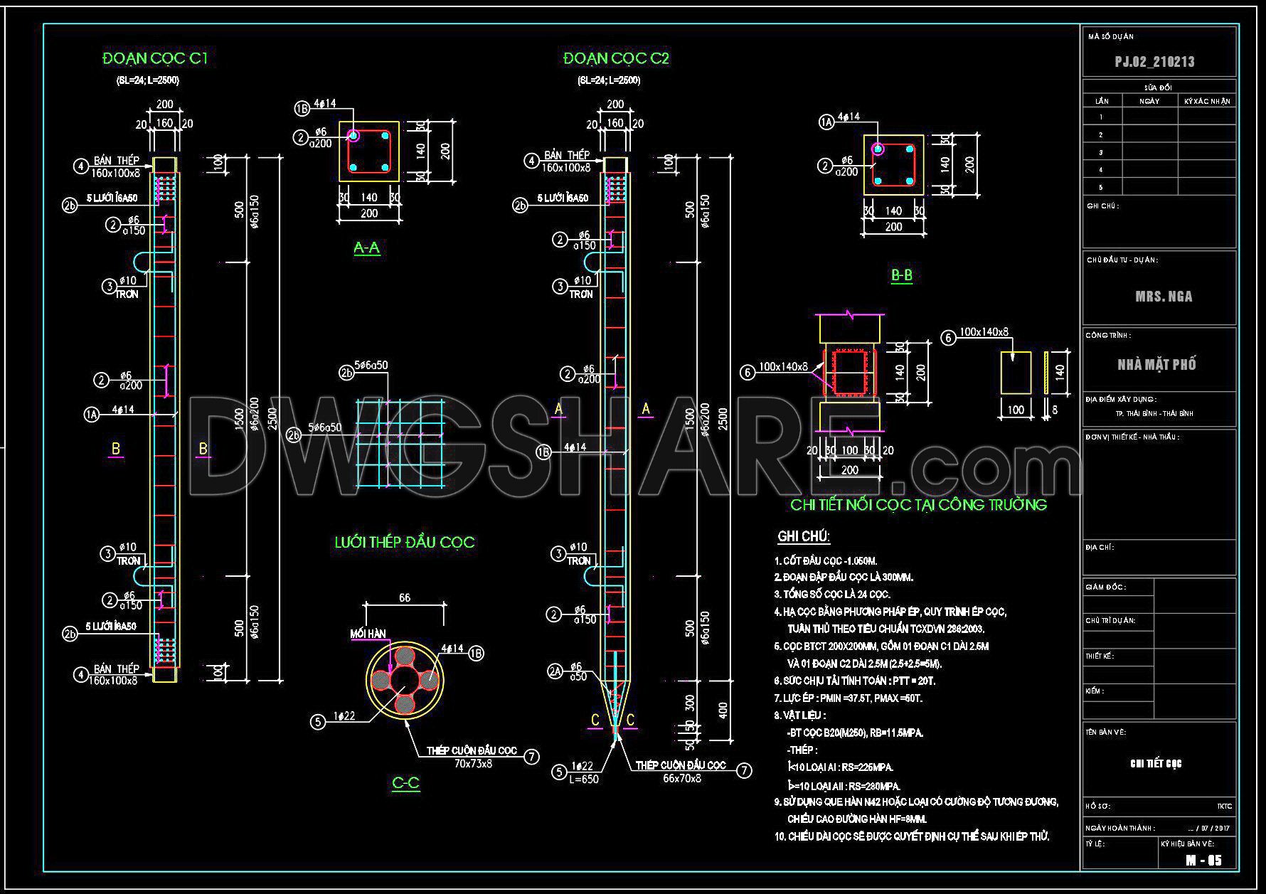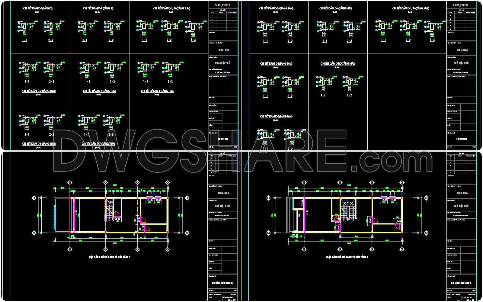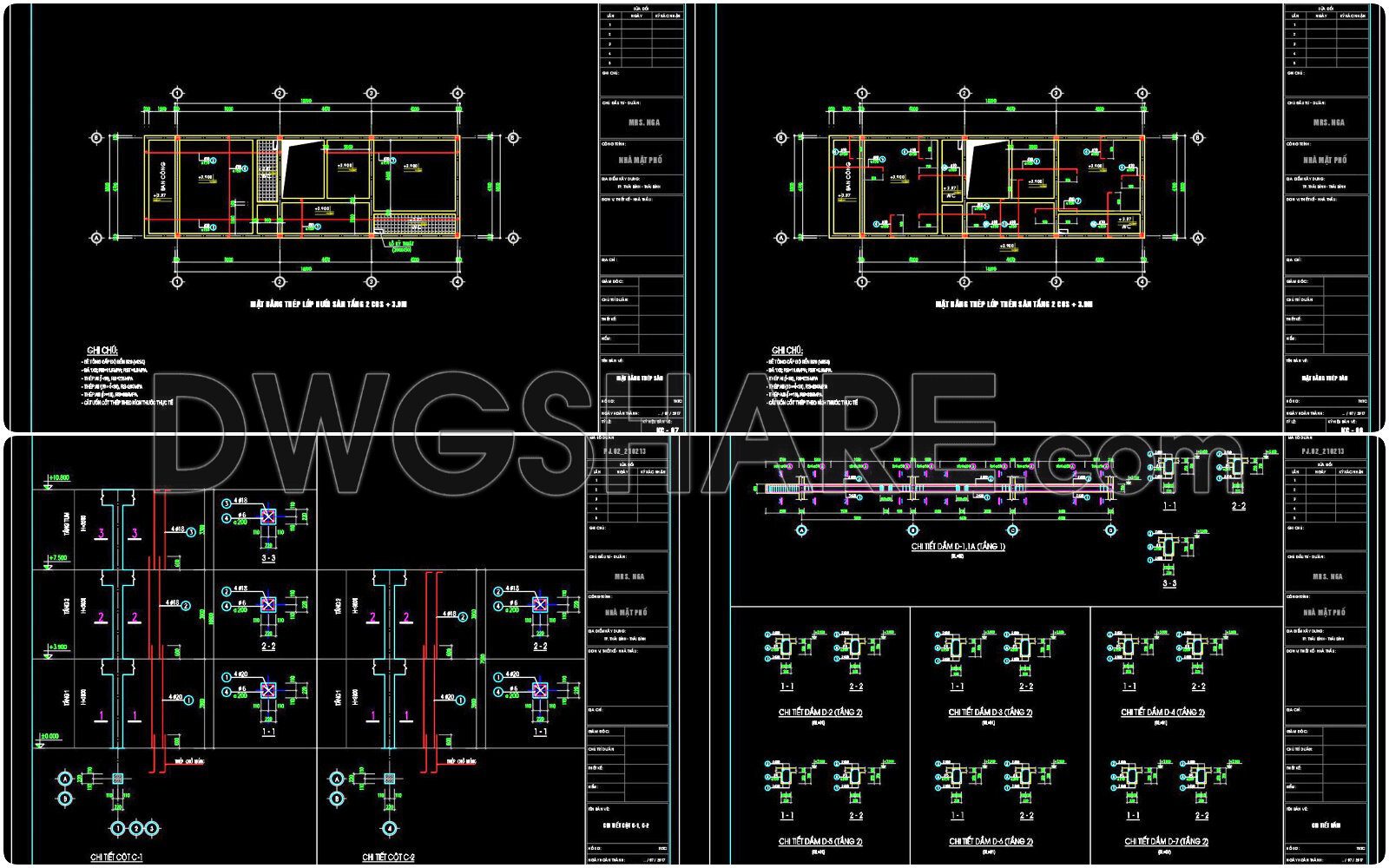 333. Free Download of Structural CAD Drawings for 5m x 14m Reinforced Concrete Townhouse