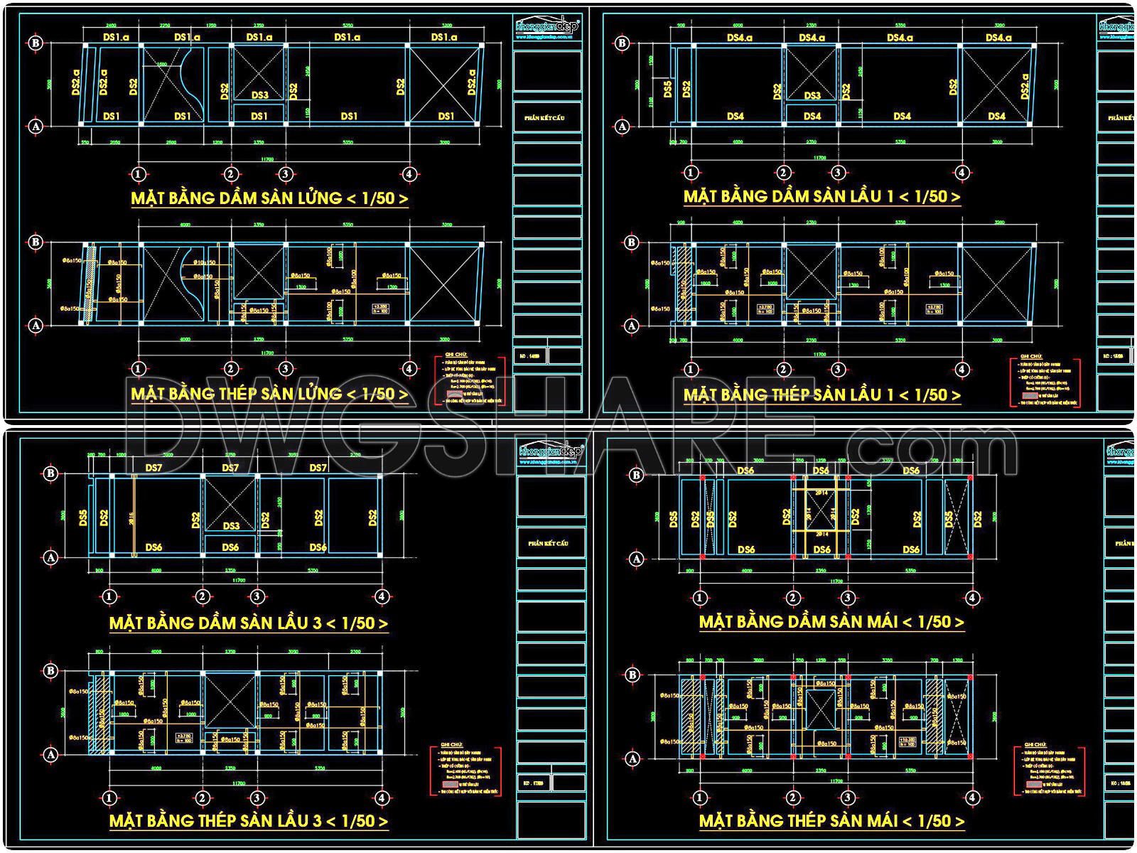 Explore the versatile structural CAD drawings for a 3.6m x 17m reinforced concrete townhouse available for free download. These comprehensive CAD DWG files offer detailed views of structural components, providing architects and construction professionals a reliable blueprint. The drawings cover essential elements such as floor and ceiling plans, rebar placement, and cross-sectional details.