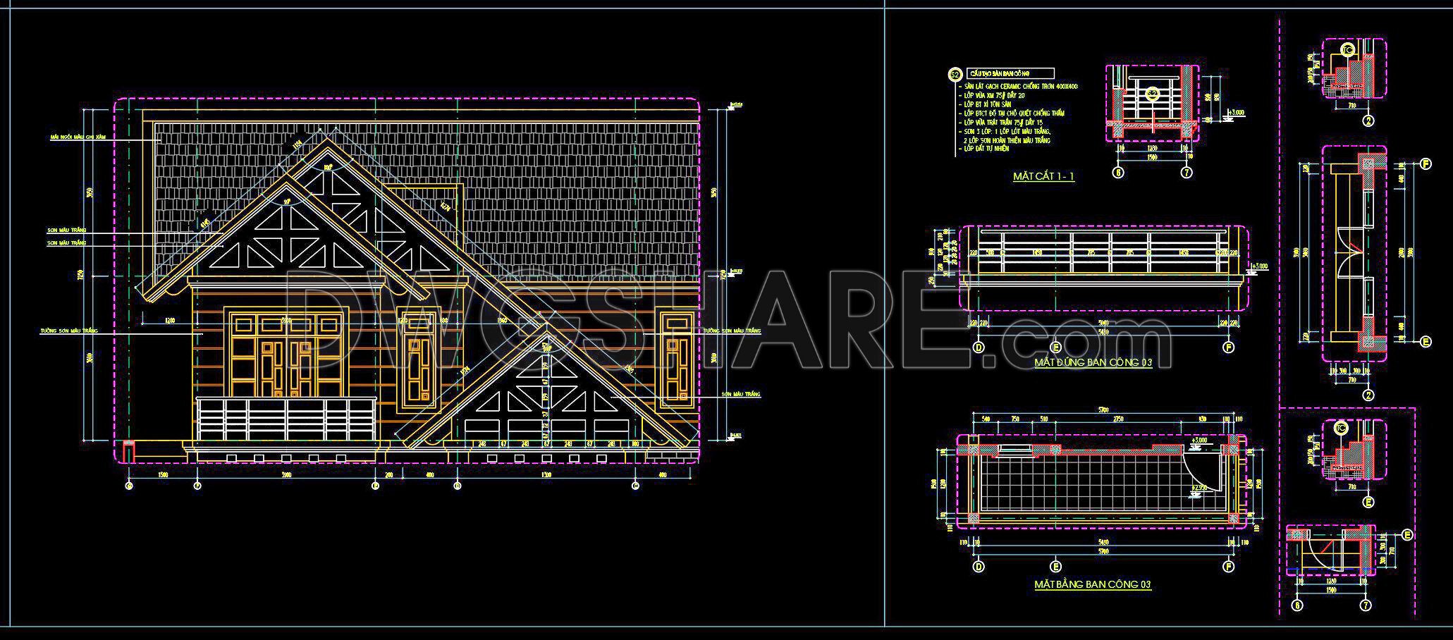 354. Free download of CAD drawings for architectural elevation details of roofs and balcony details for townhouses