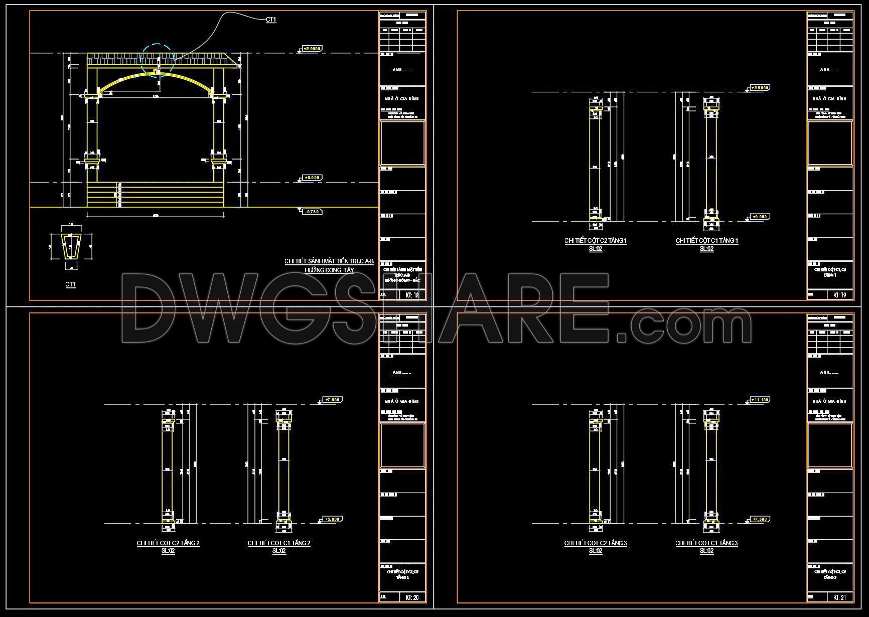 355. Free download of CAD drawings for architectural elevation details of windows and column details
