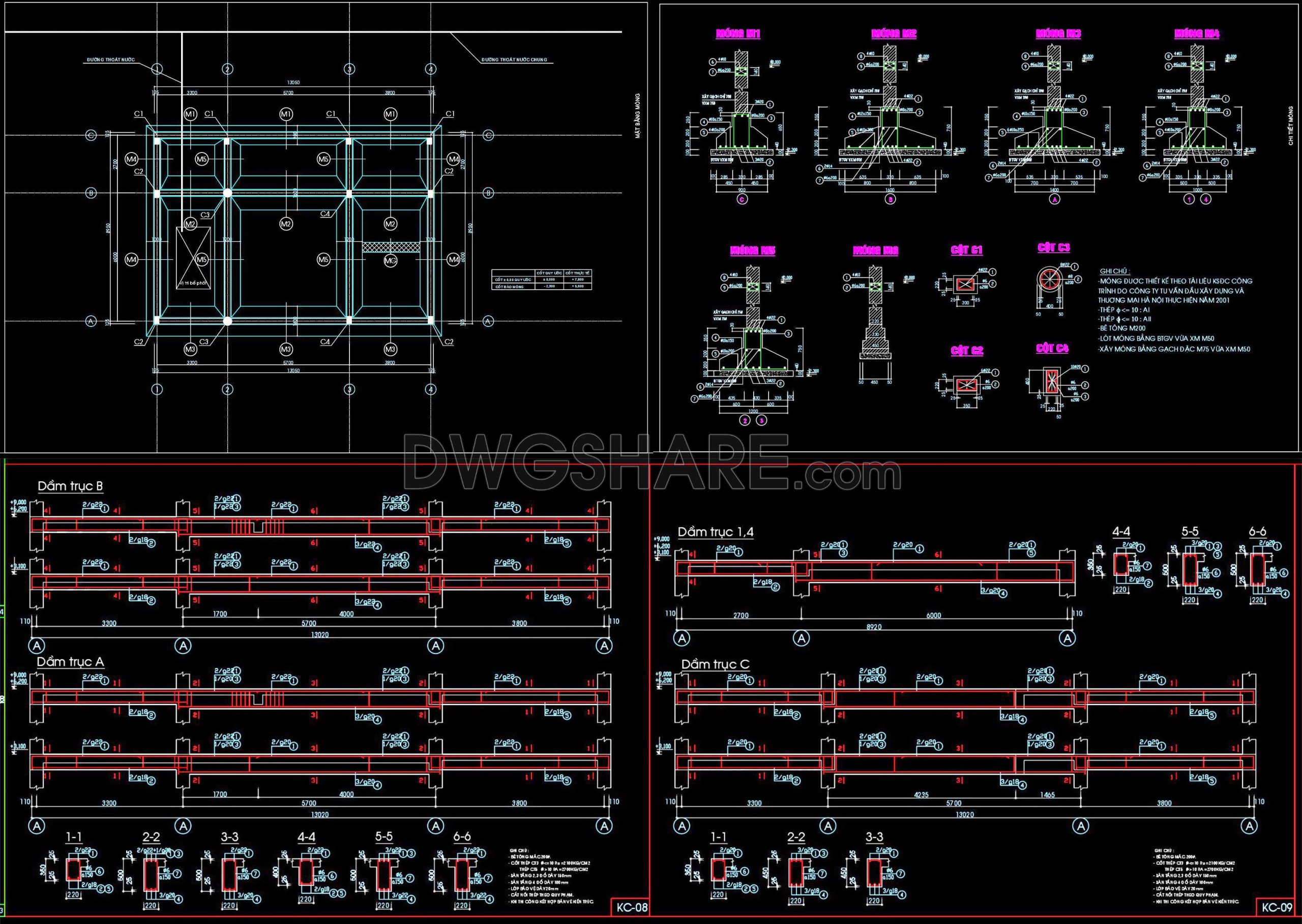 371. Free Download of Structural CAD Drawings for 9m x 13m Reinforced Concrete Townhouse