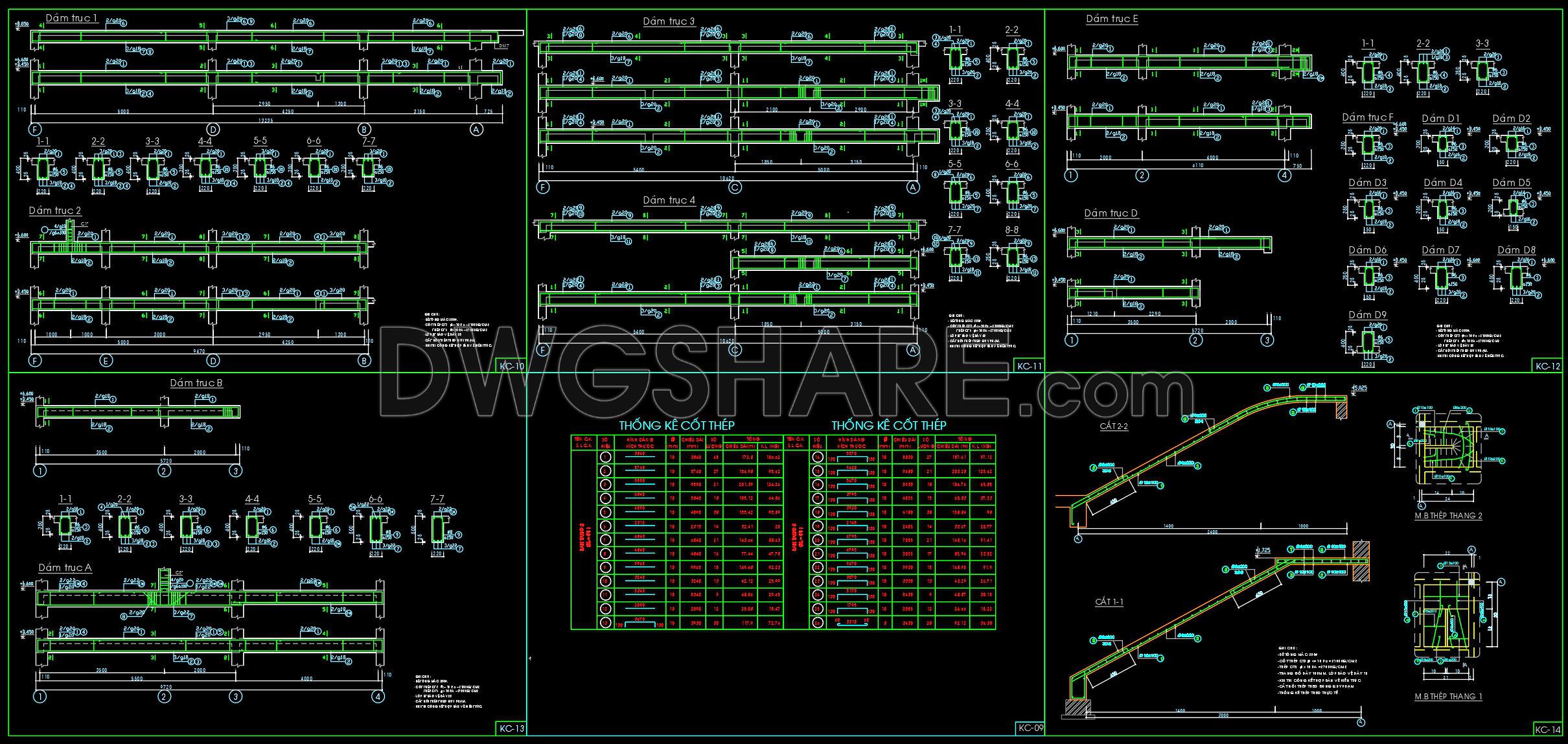 These structural CAD drawings offer a comprehensive insight into the architectural intricacies of a 9.8m x 13.3m reinforced concrete townhouse. They serve as vital tools for professionals in architecture and construction, ensuring every dimension and specification is meticulously detailed. This set includes various essential drawing types, each serving unique and crucial roles in the construction document package.