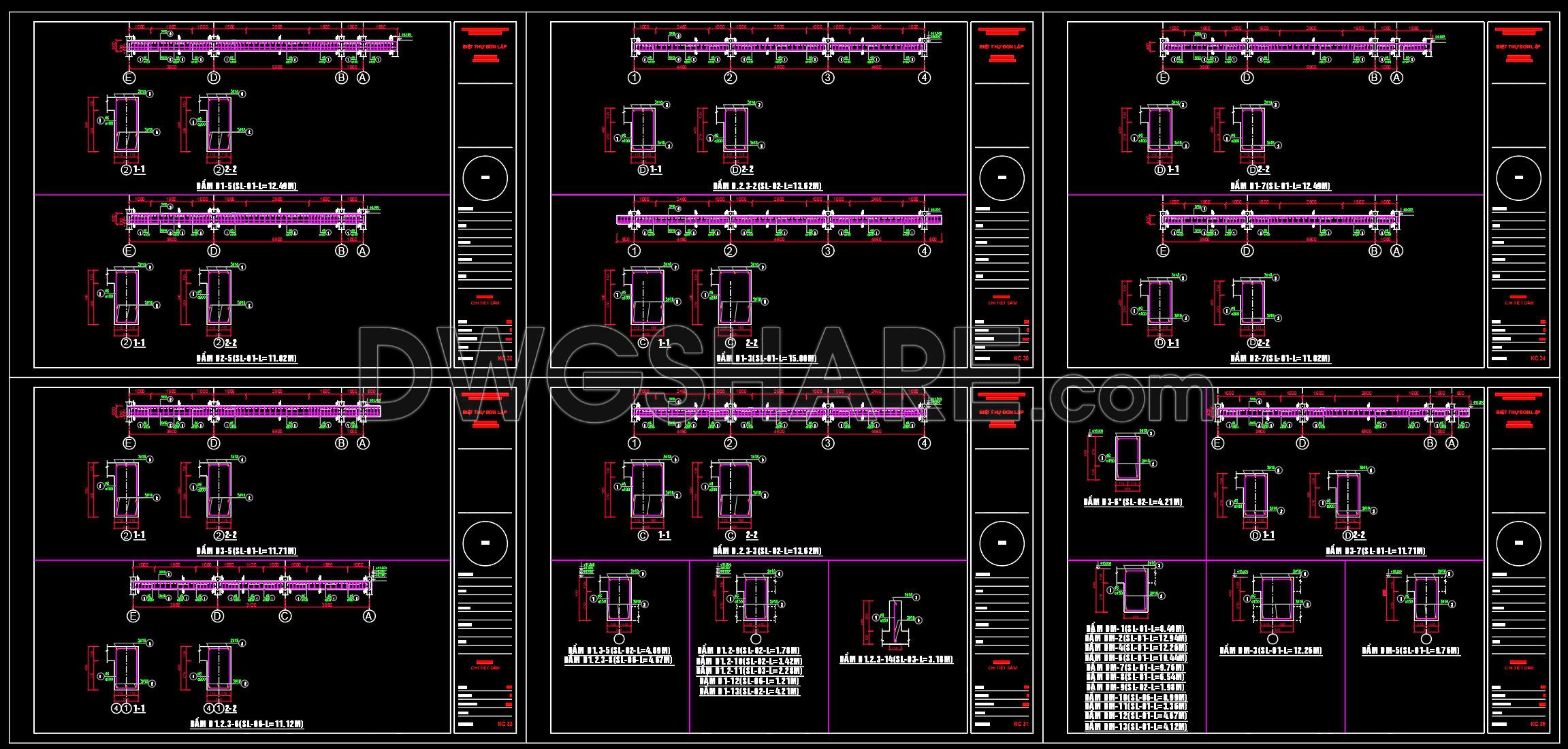 Construction details: Plans detail reinforcements in beams and columns, showcasing how loads are distributed and managed. This is crucial for maintaining structural integrity.