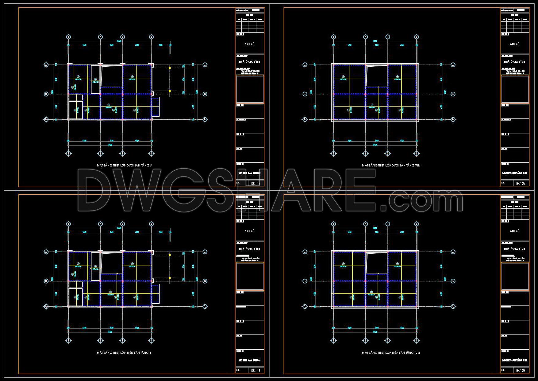 Explore the comprehensive structural drawings for a reinforced concrete townhouse with the dimensions of 9.2m x 22.8m. These CAD DWG files are meticulously crafted to provide a robust foundation for architects, engineers, and construction professionals who are engaged in design and build projects.