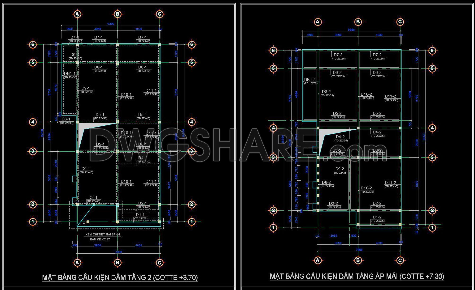 388. Free Download of Structural CAD Drawings for 9.3m x 17m Reinforced Concrete Townhouse