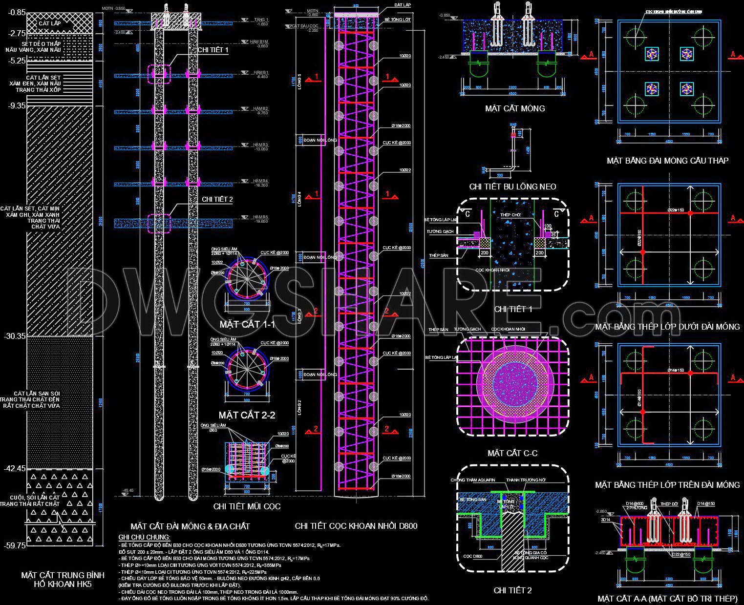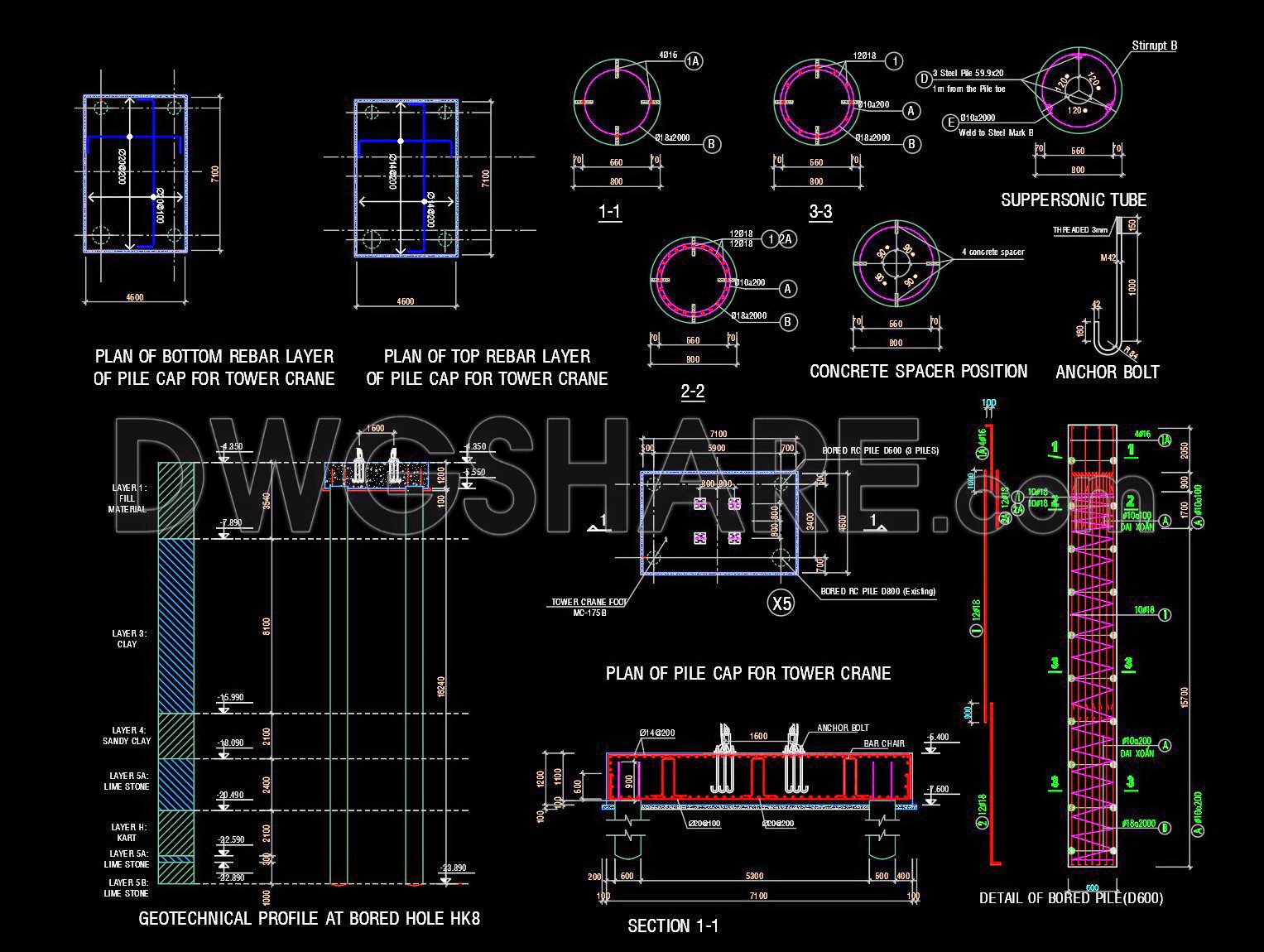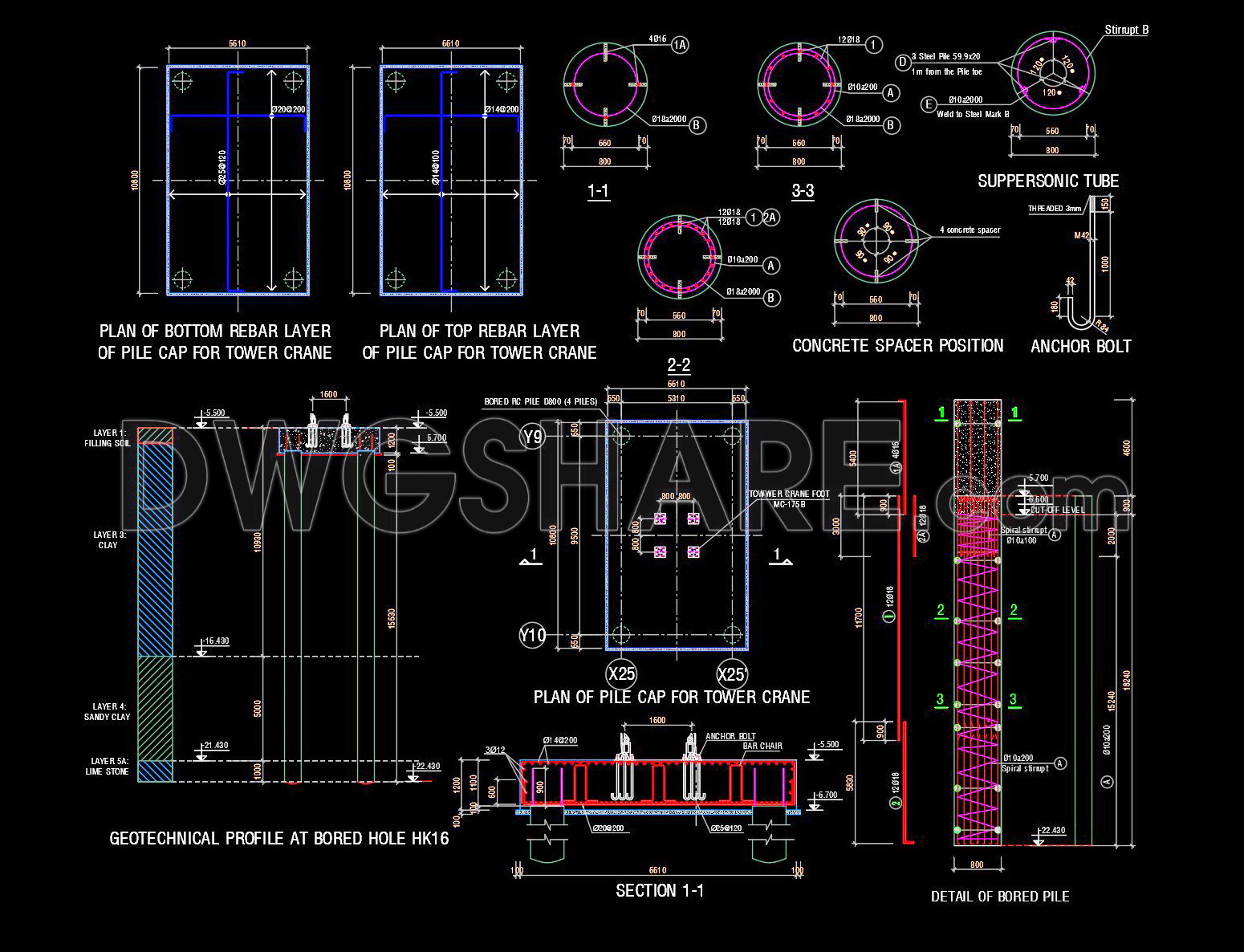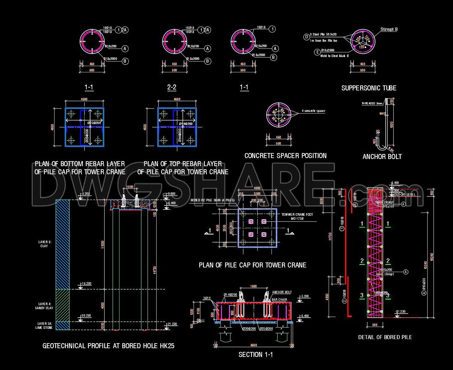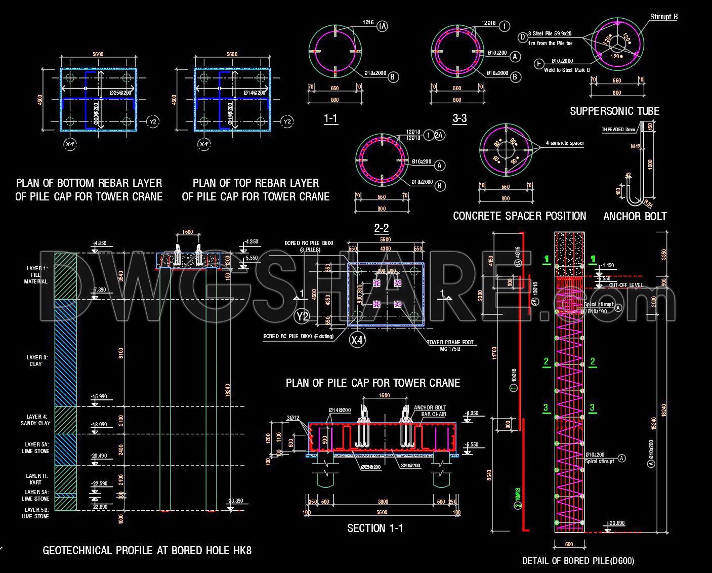40. Free Download CAD Drawings of Tower Bridge Foundation Method with Bored Piles