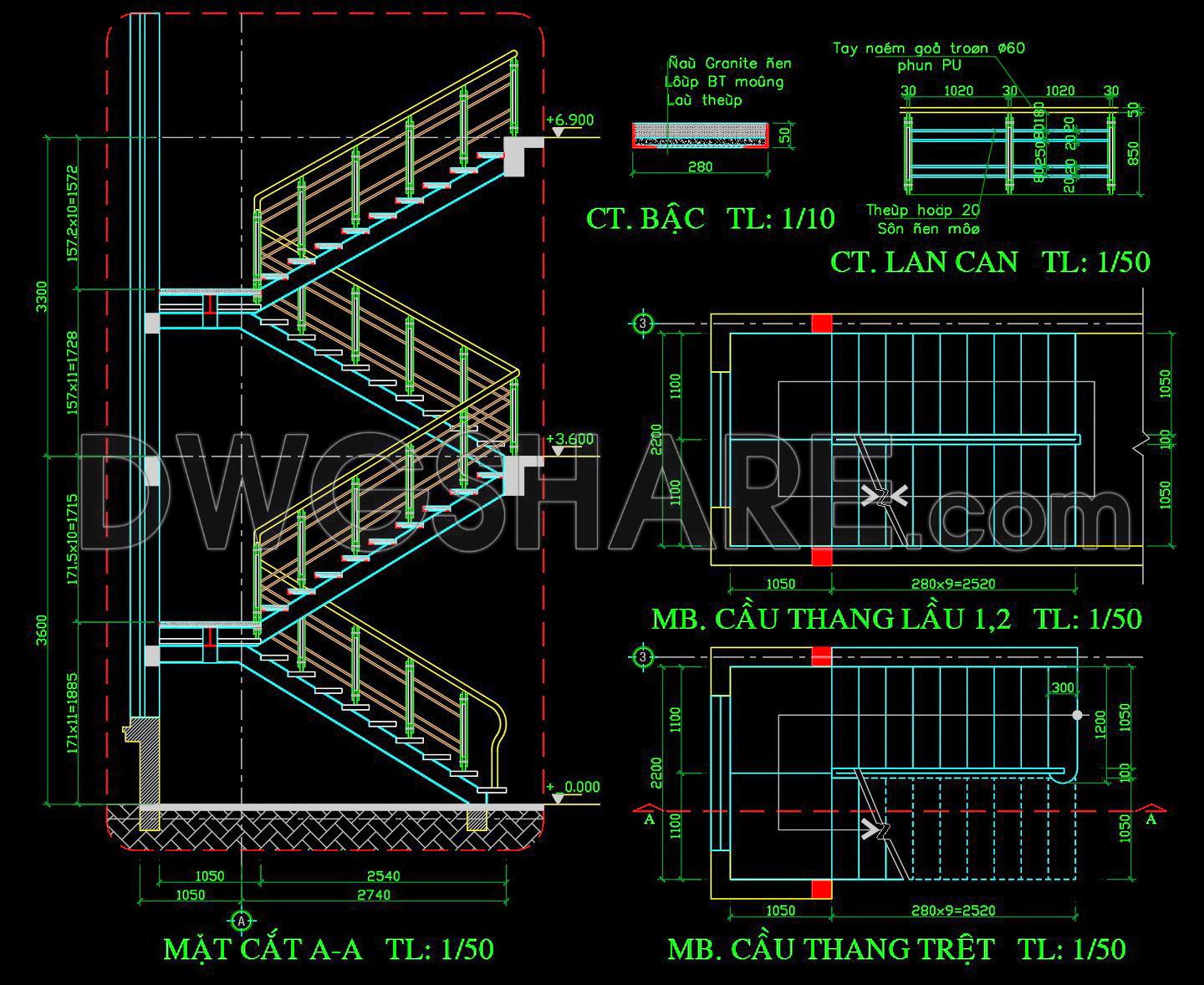 401. Free Download CAD DWG – Detailed Stairs for Townhouse Design