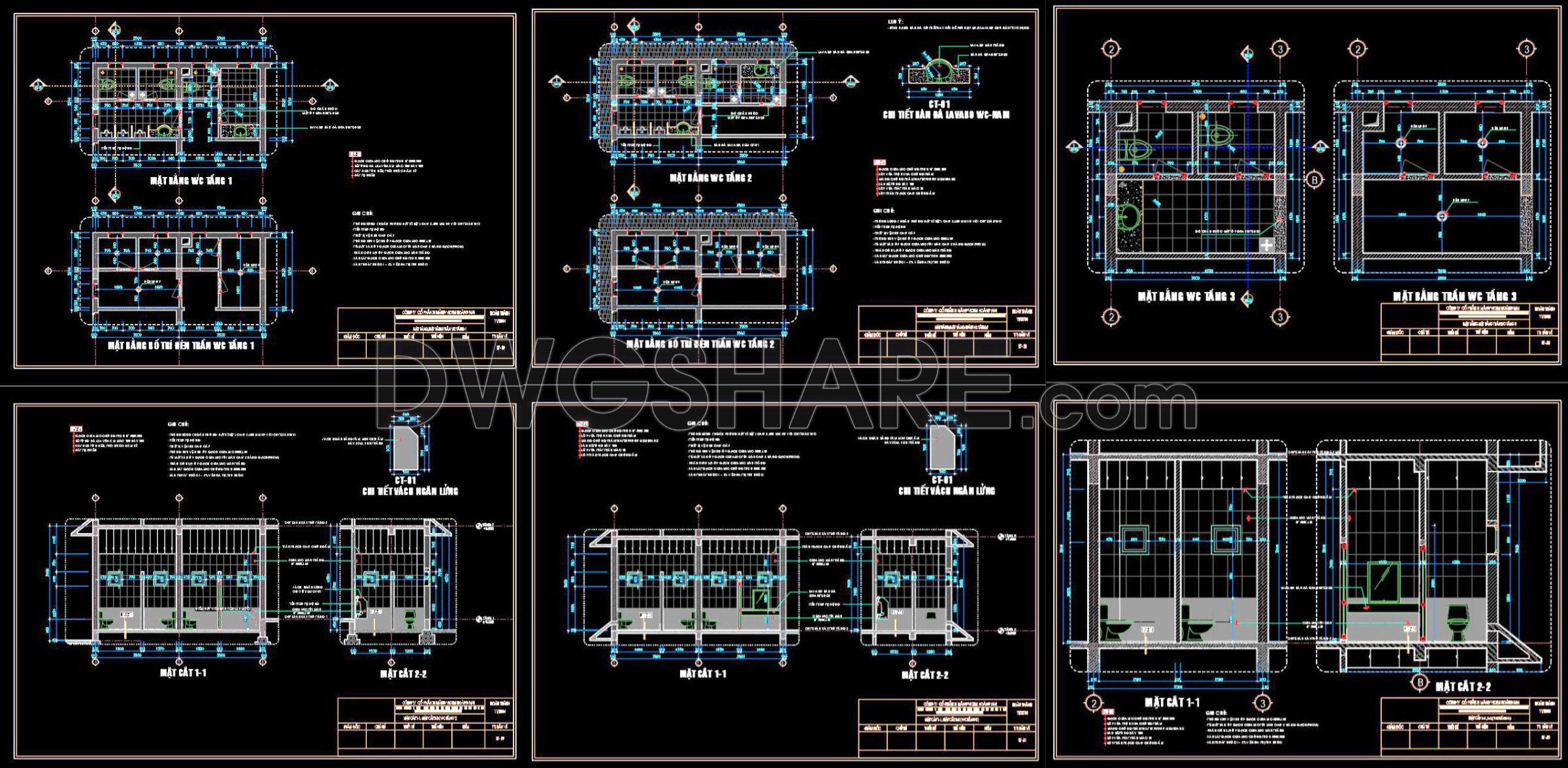 424. Free download of CAD technical drawings for the construction of bathrooms in townhouses