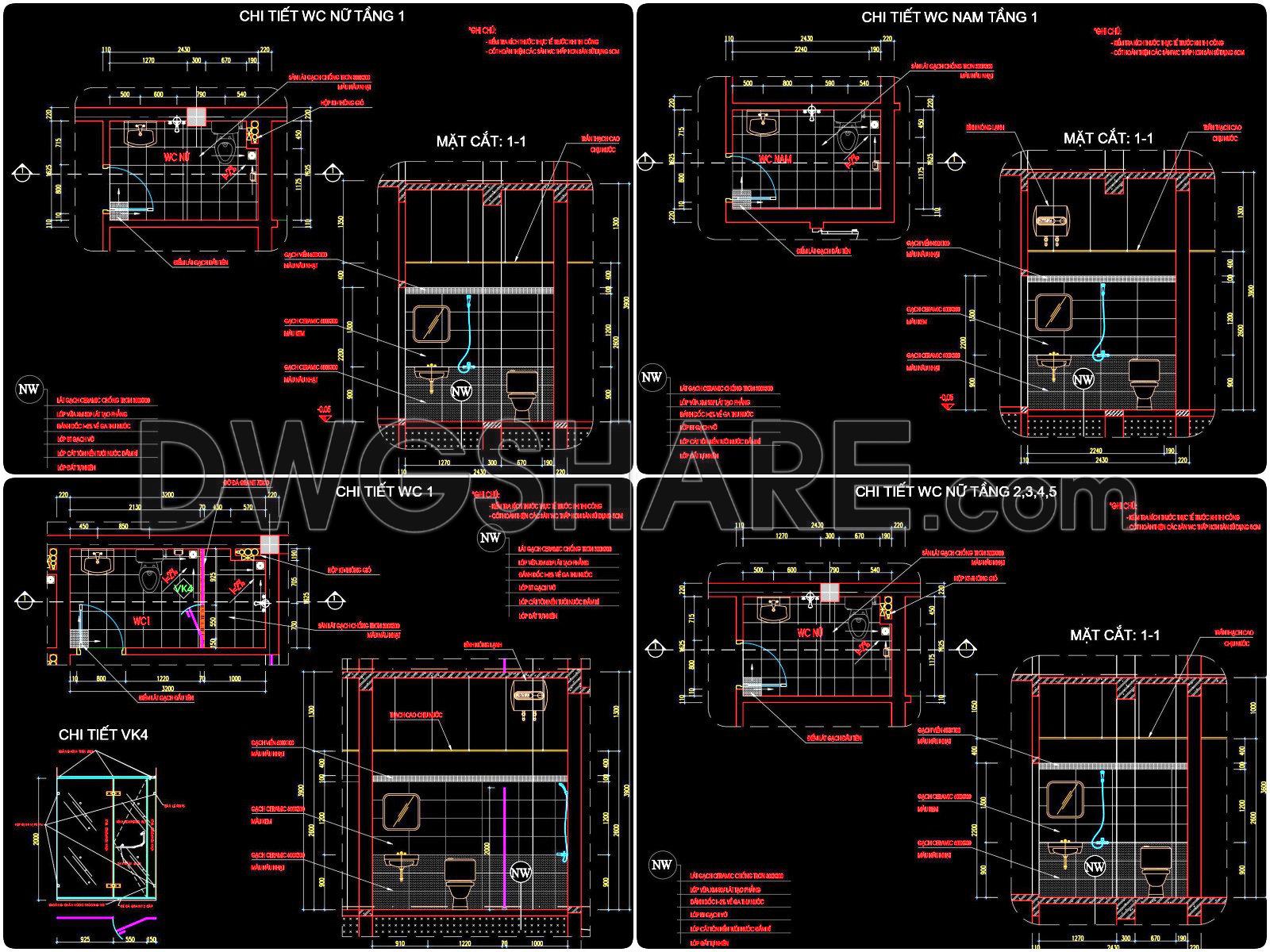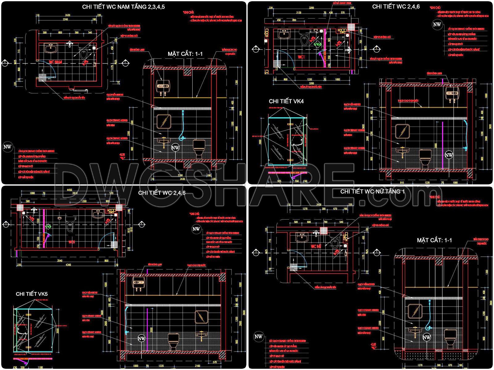 428. Free download of CAD technical drawings for the construction of bathrooms in townhouses