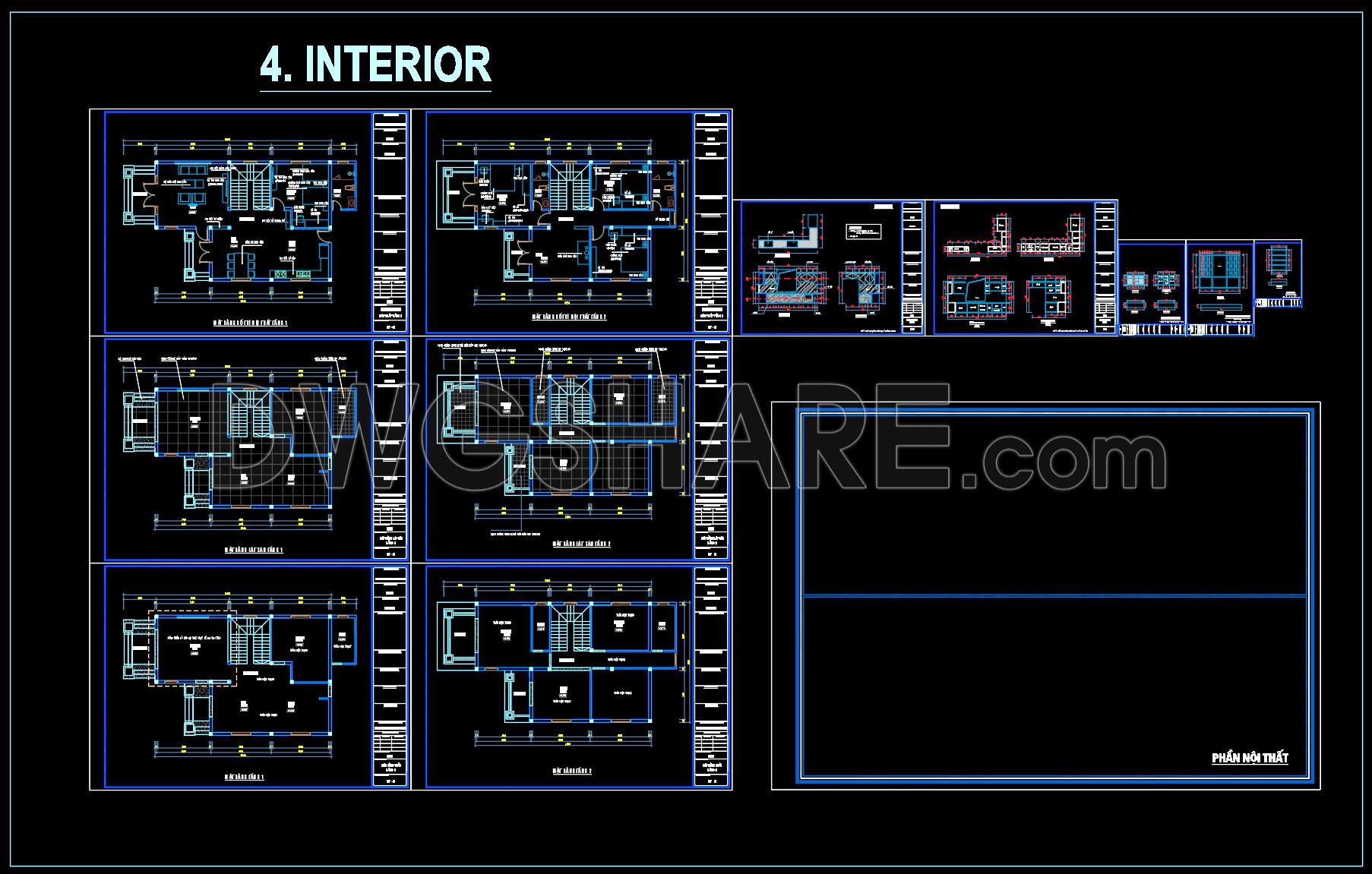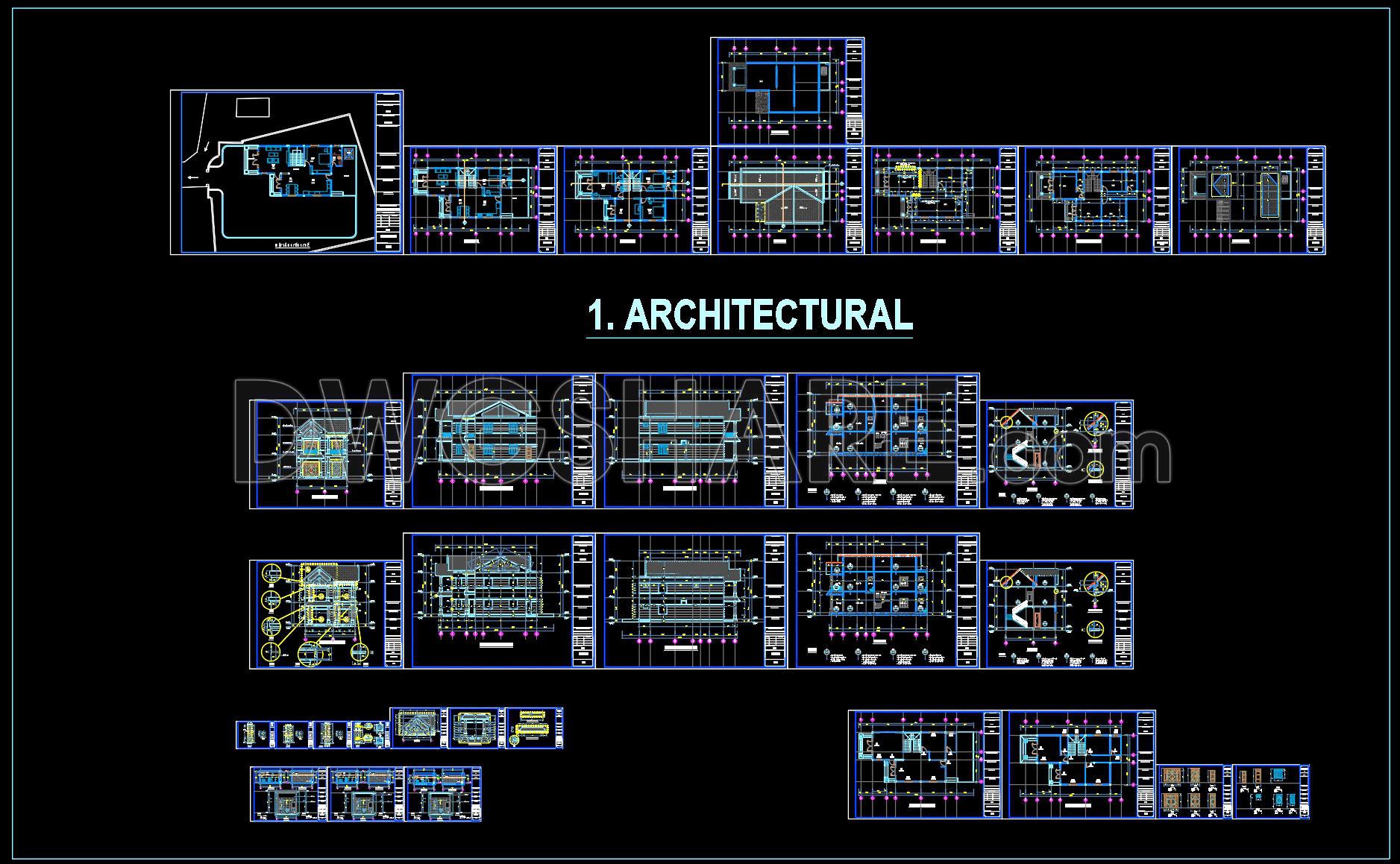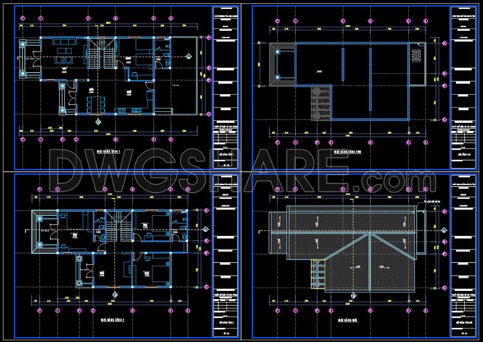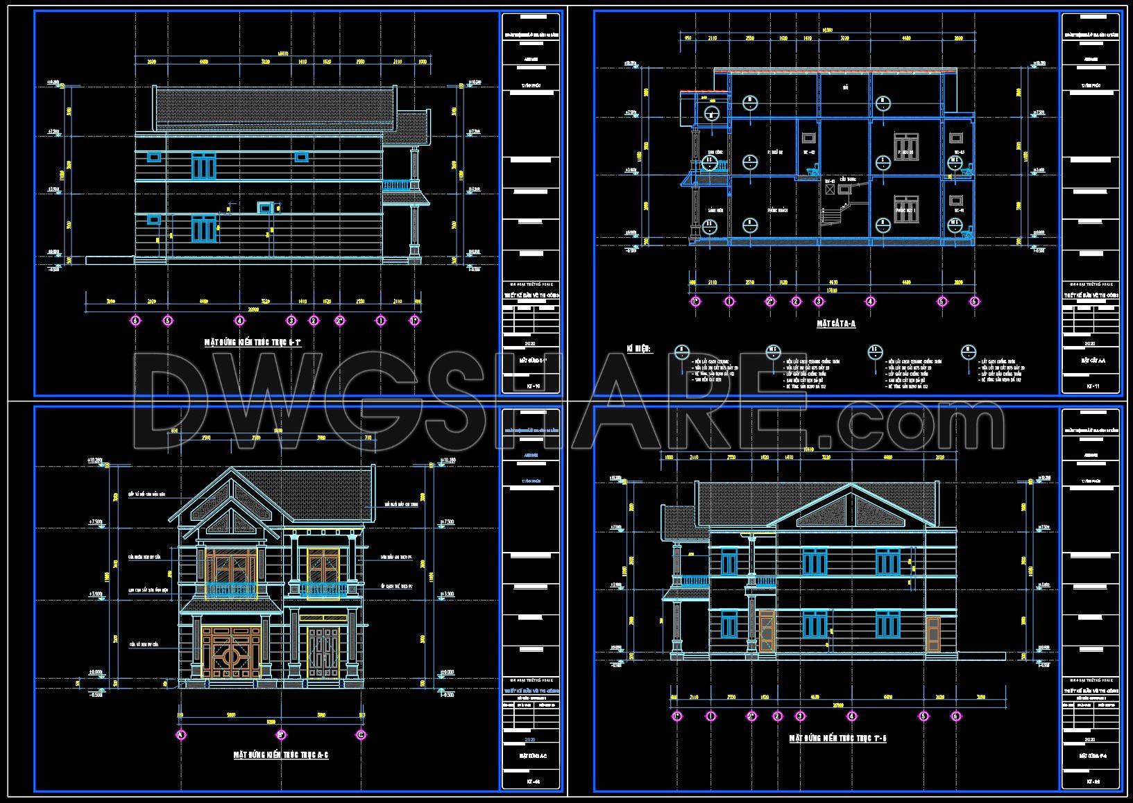The drawings are professionally organized and presented according to AutoCAD standards, making them an excellent reference for architects, engineers, and students involved in residential villa design projects.