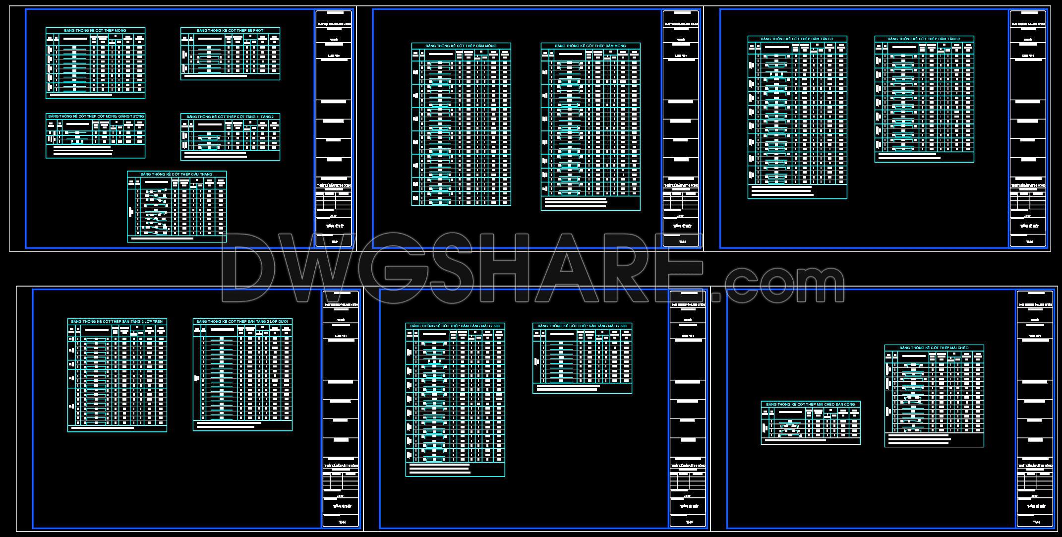 - Structural Drawings: Column, beam, slab, and foundation layouts, detailed reinforcement drawings for each floor, and material quantity tables with precise dimensions for construction.