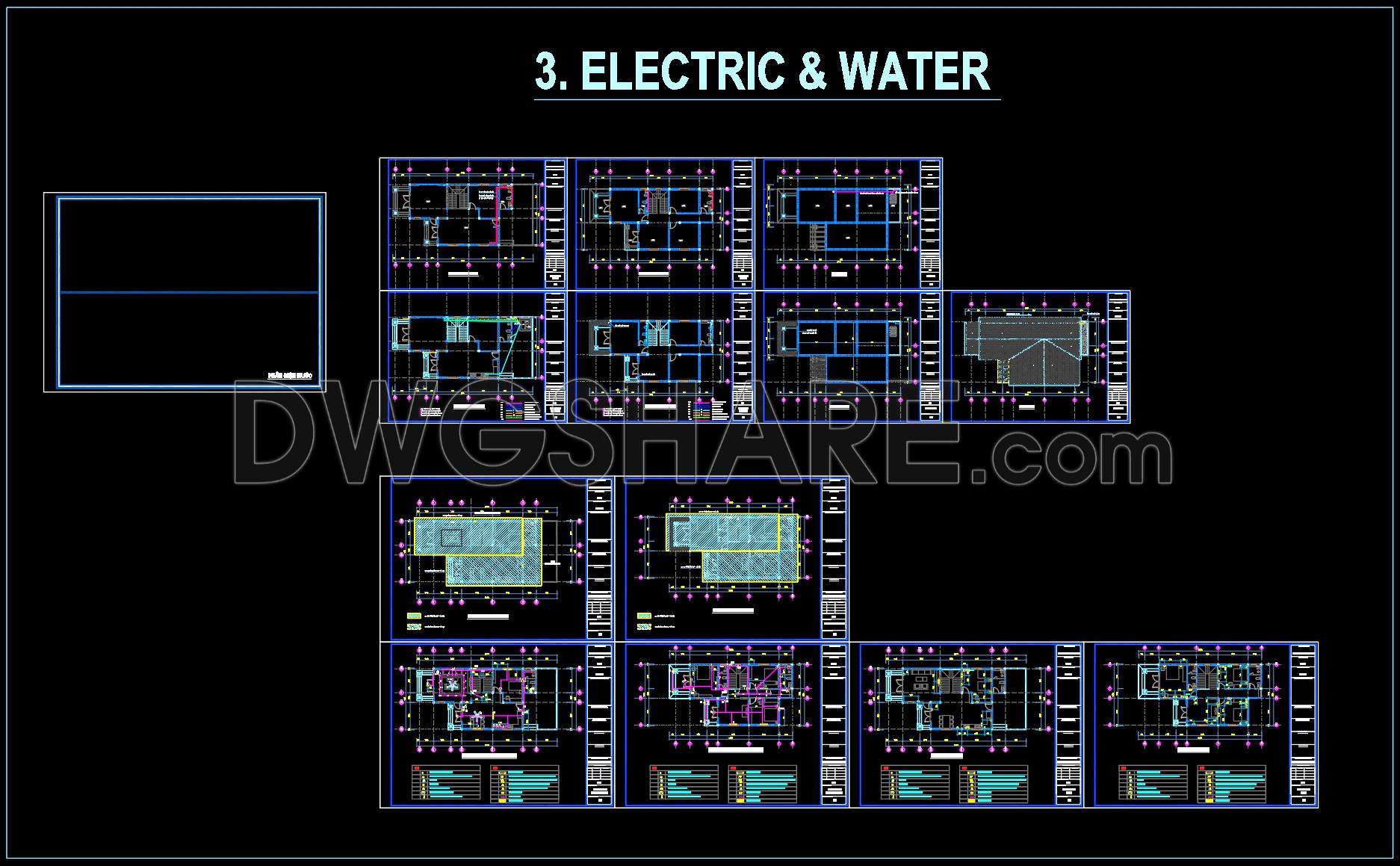 - Electrical Drawings: Lighting layouts, power sockets, air conditioning systems, switchboards, and connection details.