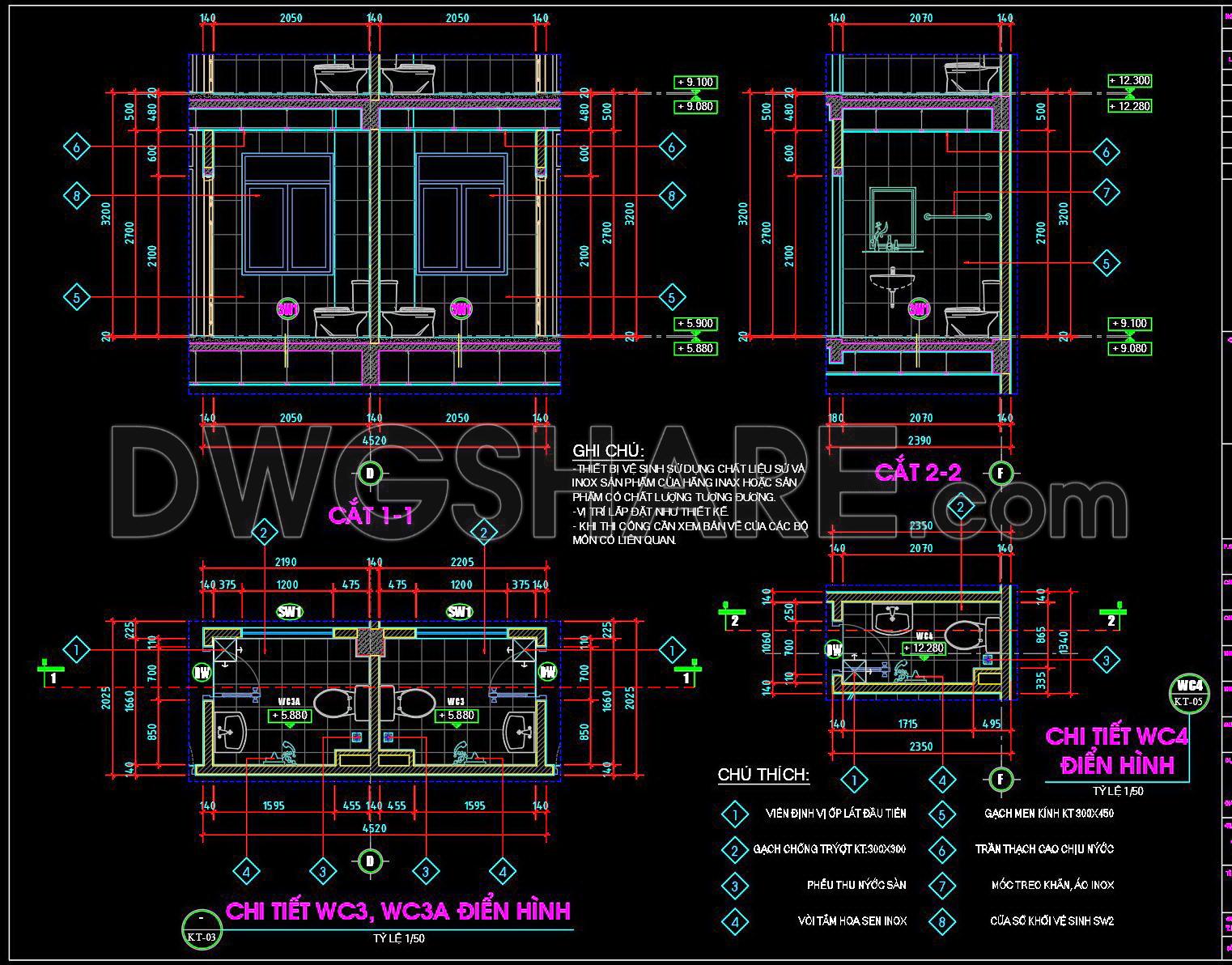 434. Free download of CAD technical drawings for the construction of bathrooms in townhouses