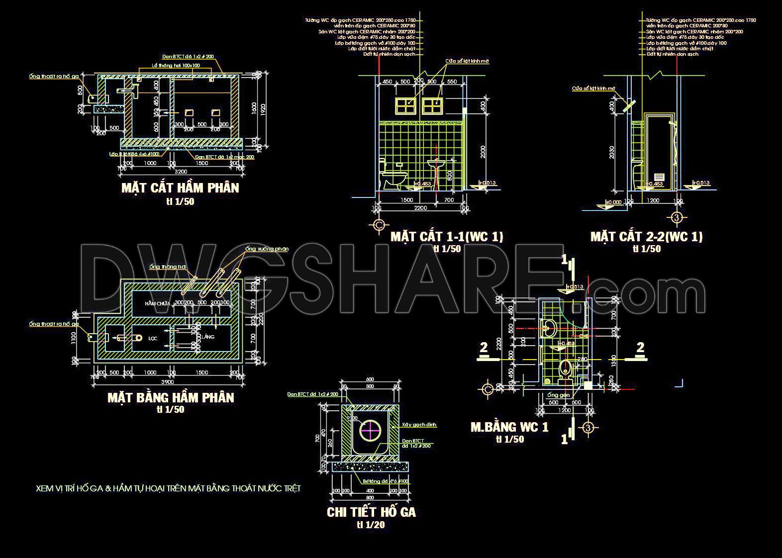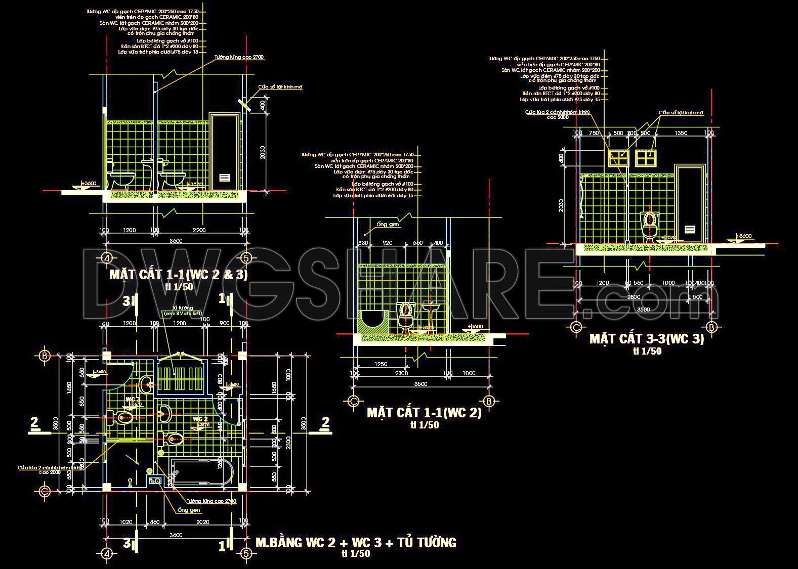 435. Free download of CAD technical drawings for the construction of bathrooms in townhouses