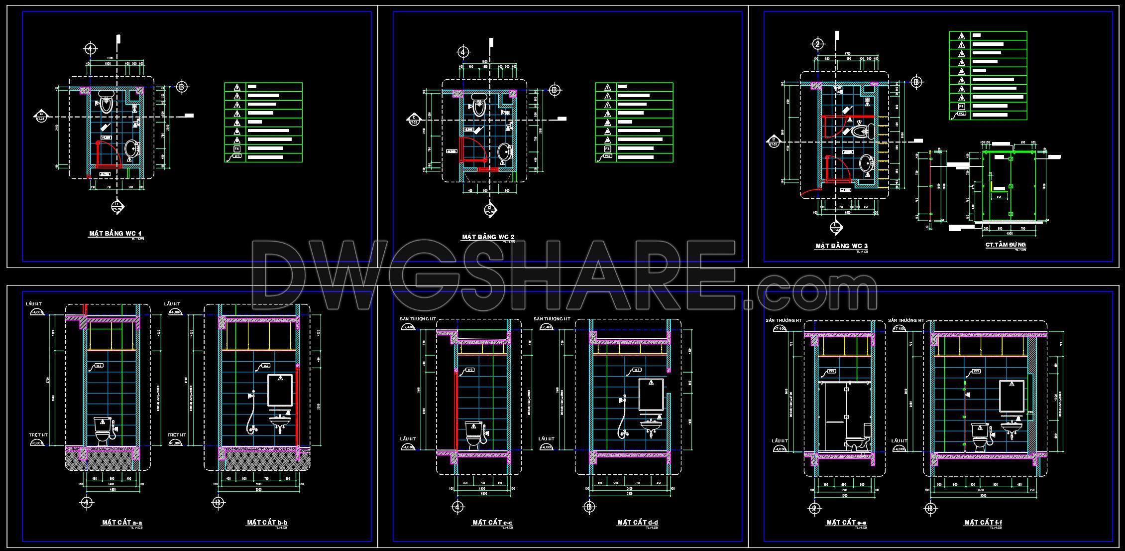 436. Free download of CAD technical drawings for the construction of bathrooms in townhouses