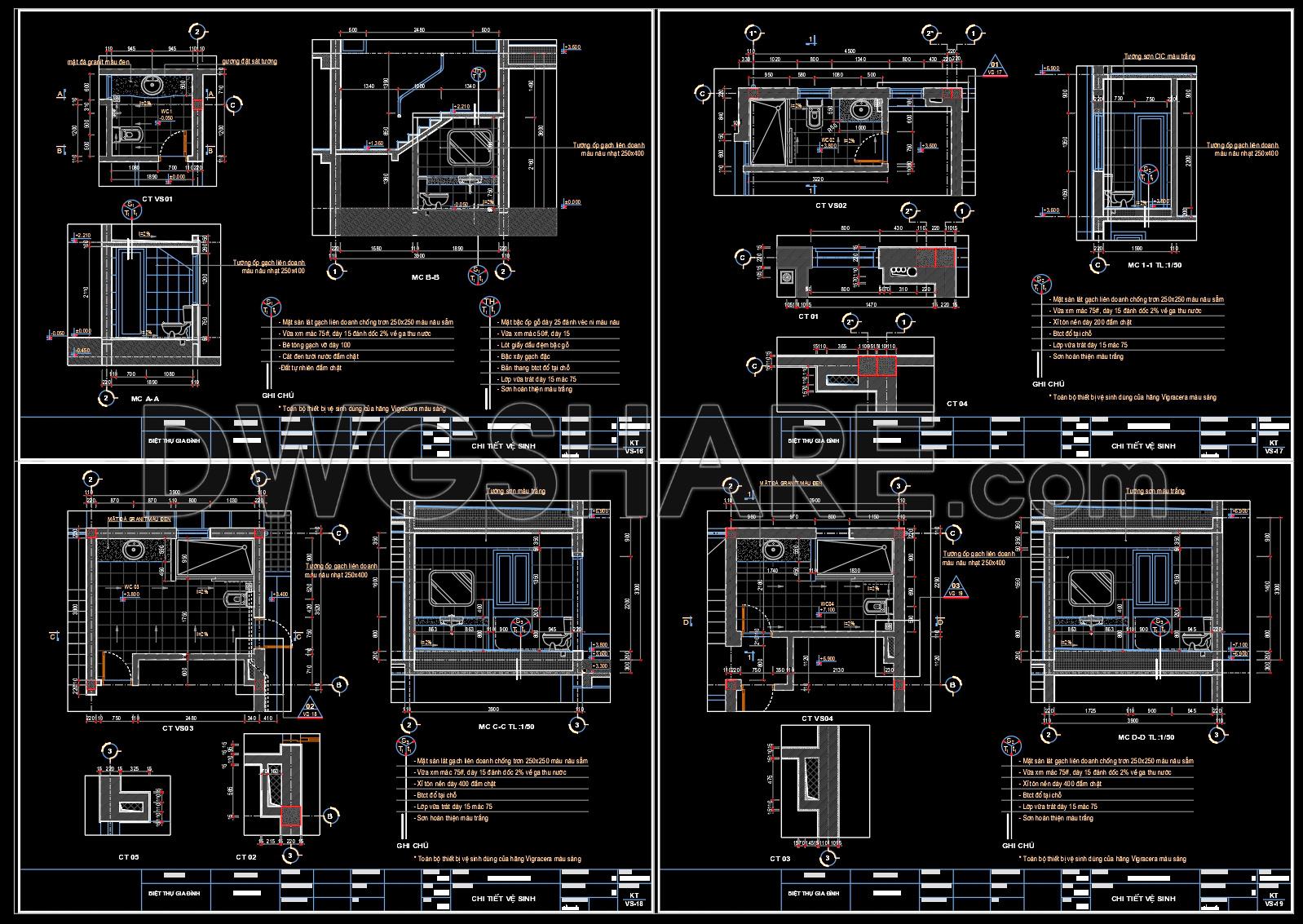 441. Free Architectural CAD Drawings for Townhouse Bathroom Construction