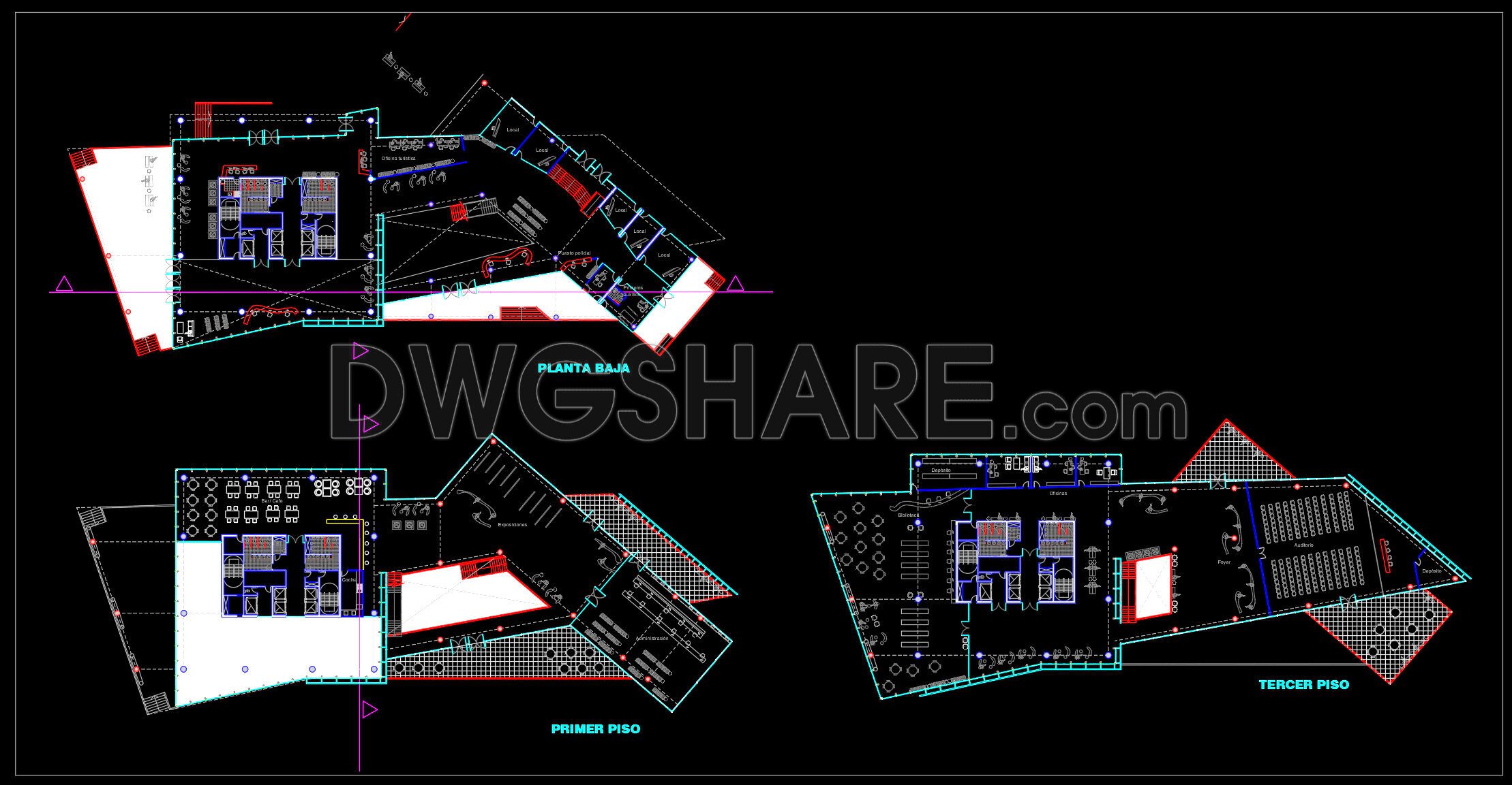 45. Free Download CAD Floor Plan – Modern Library, Office, and Auditorium Layout
