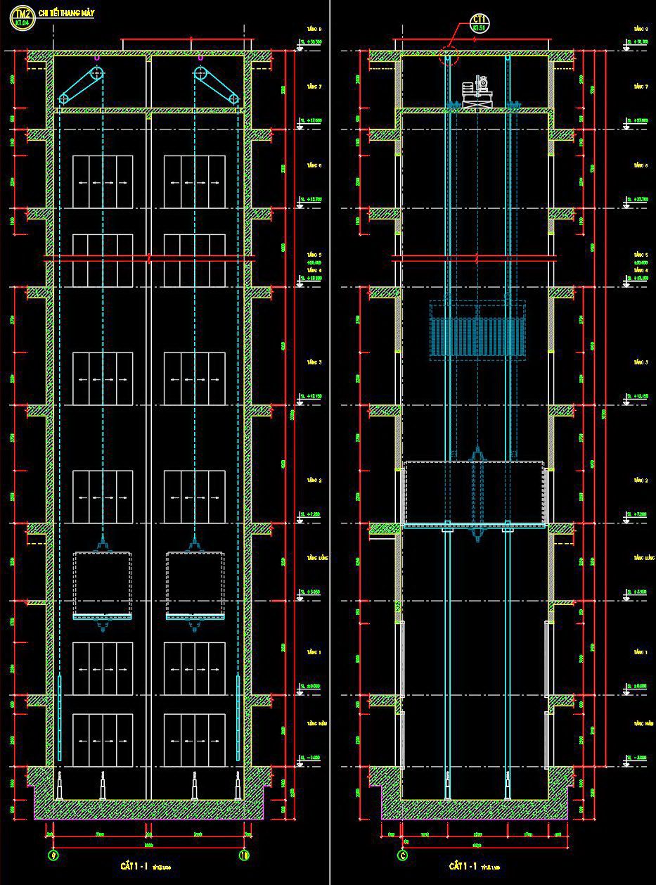 Explore our comprehensive CAD drawings for elevators and car lifts, available for free download. These detailed files include multiple views and dimensions that are indispensable for architects and construction professionals. The precise schematics offer several advantages: