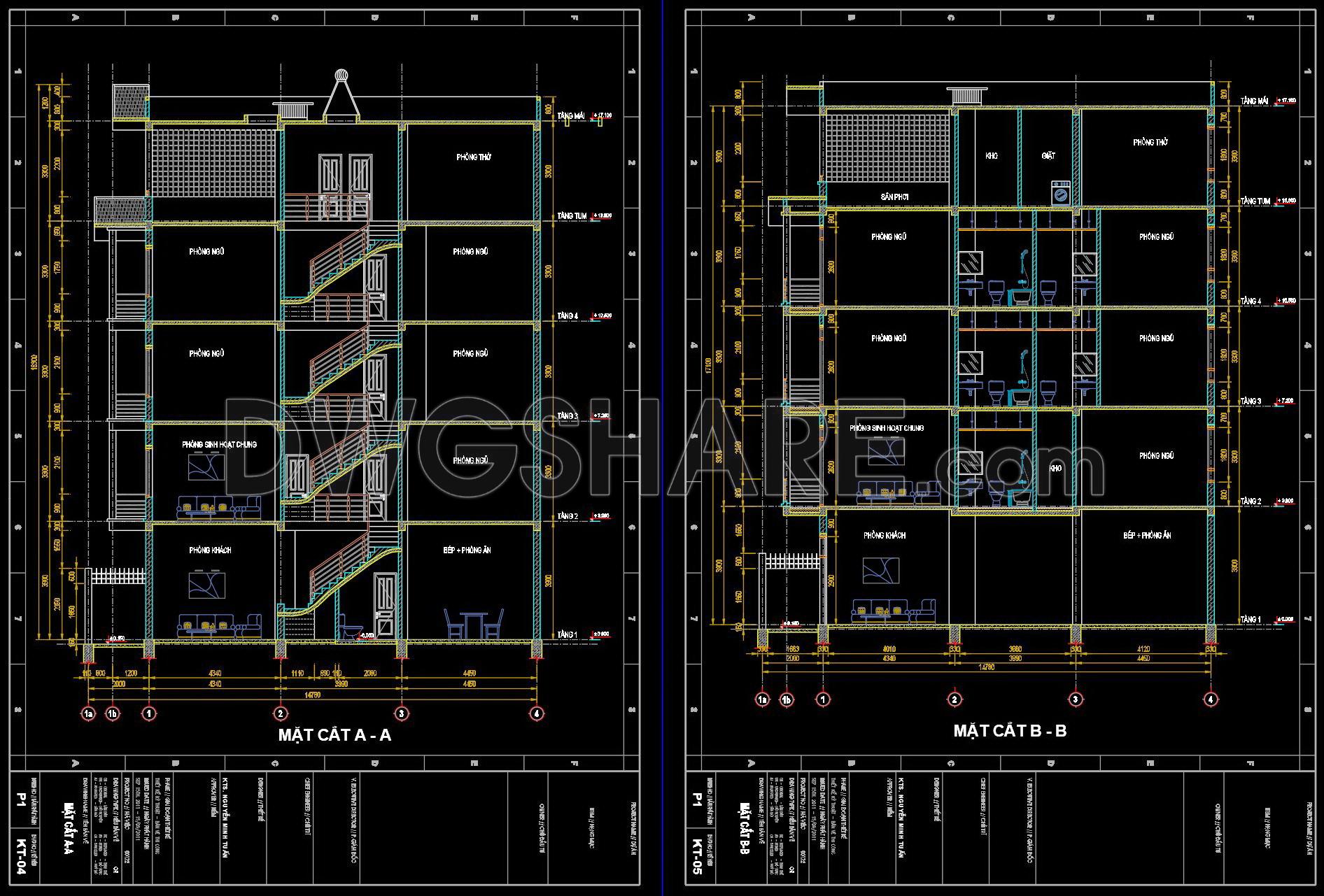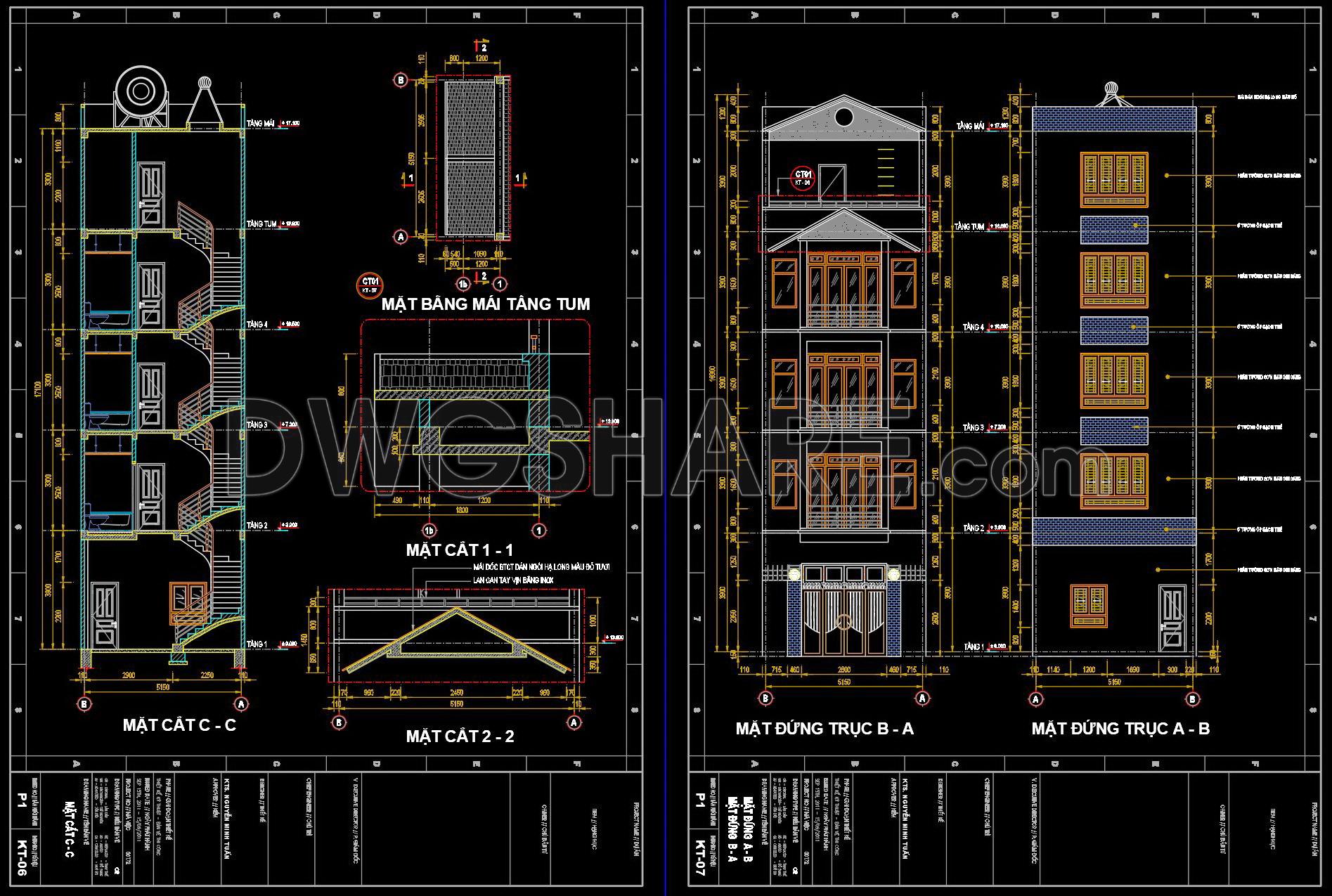 472. Download CAD Design Drawings for a 5-Story House with Dimensions 5.3m x 14.7m