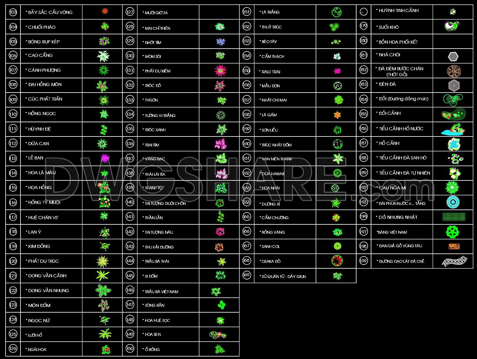 50. Free download CAD blocks of plan-view trees, clearly named according to Vietnamese standards