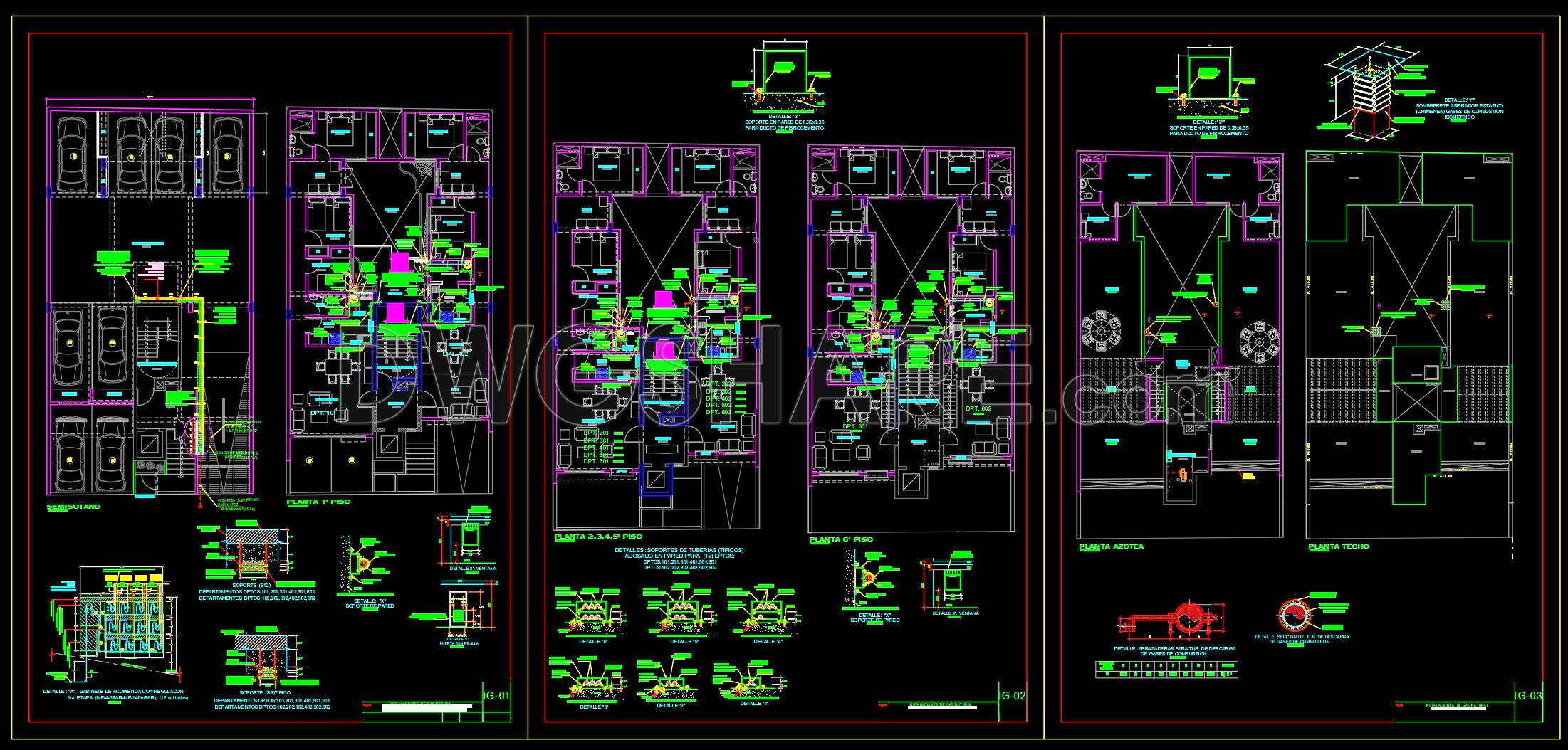 At first glance, this drawing set feels very “engineering-driven” — no unnecessary decoration, no flashy presentation, just solid, practical content. It’s a gas distribution system design for a multi-storey residential building, and you can tell it was developed with real construction in mind.