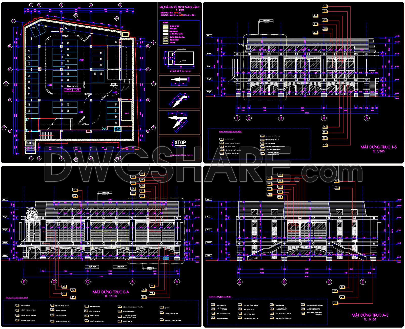 This CAD drawing set presents the overall floor plans and spatial organization of a commercial service supermarket with a total area of approximately 4,000 m², developed comprehensively from the basement to the main retail floors. From an interior architecture perspective, the layout solution is clearly structured, maximizing operational efficiency and usable space.