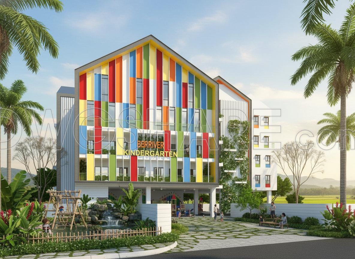 The restroom area is grouped to one side, separated from the main learning spaces but still within a convenient distance. The staircase is positioned at the end of the building, directly connected to the corridor, ensuring a clear and efficient circulation flow.