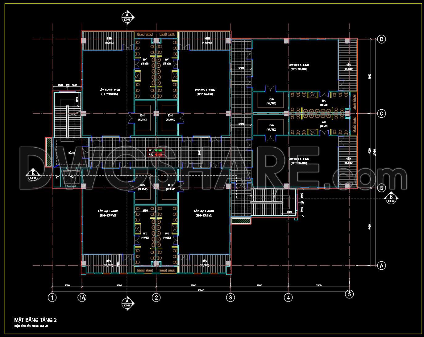 56. Free Download CAD Drawing of Second Floor Plan for School Building with Classrooms and Restroom Layout
