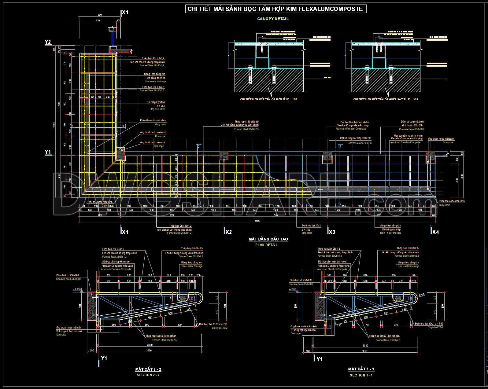 573. Download Free Detailed CAD Drawing of Entrance Canopy Clad with FlexalumComposte Alloy Panels