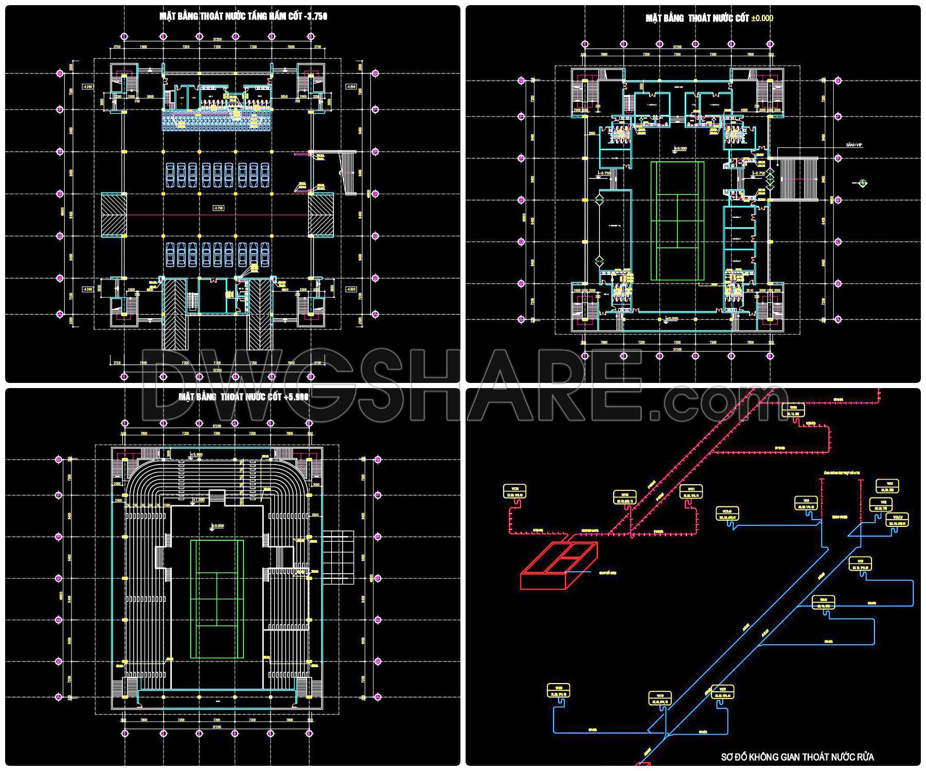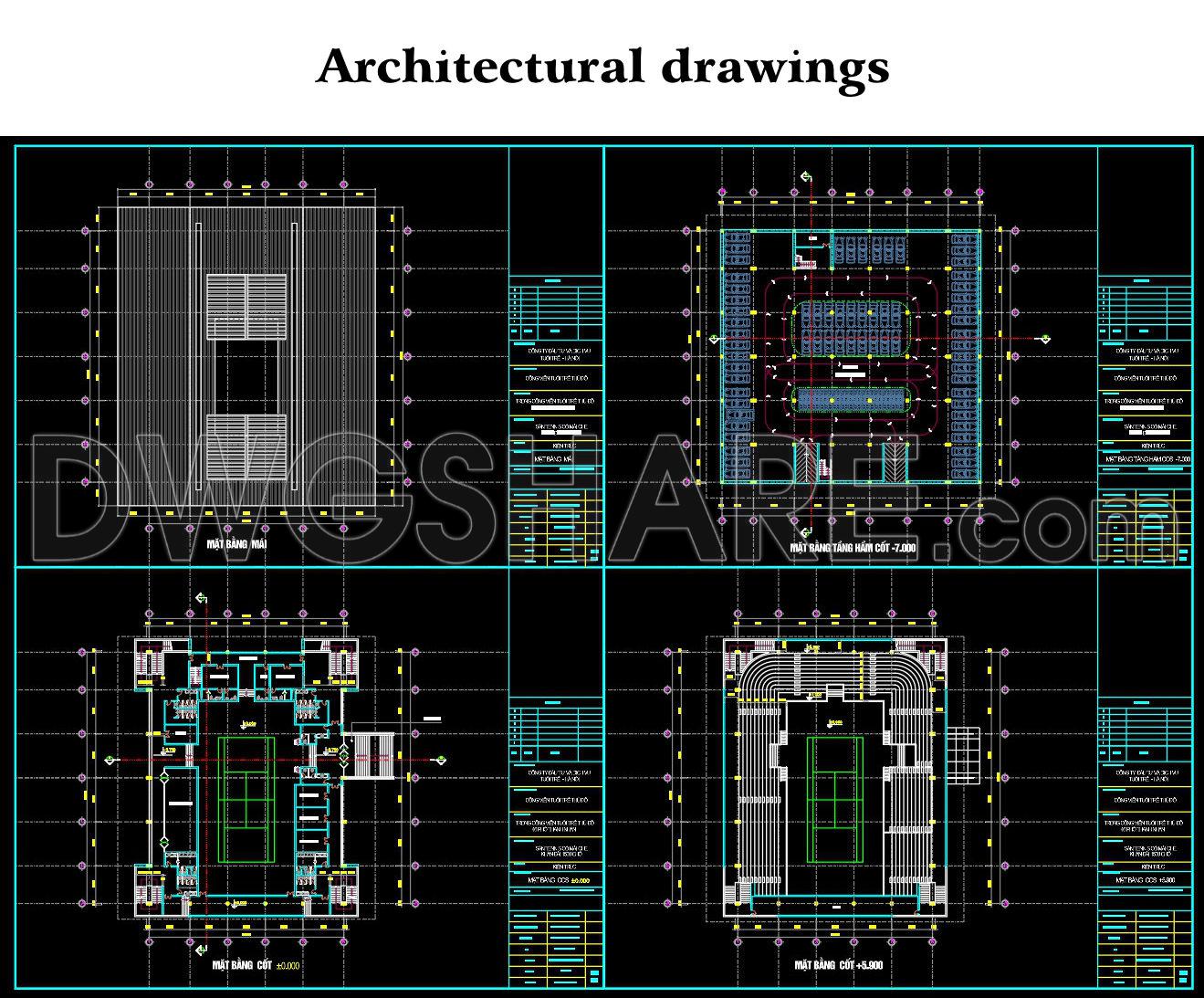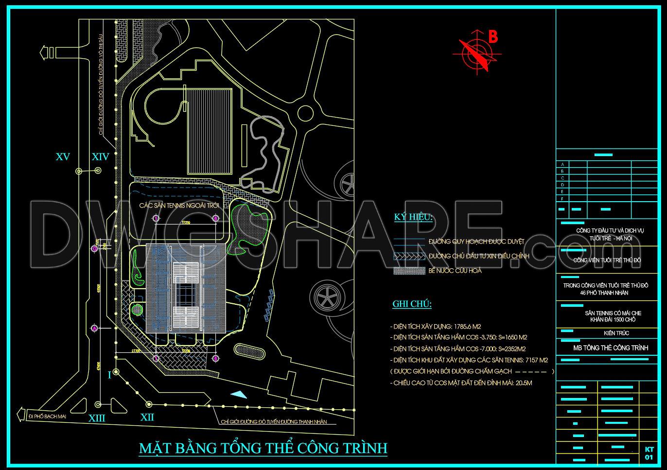 From the perspective of a lead architect and project engineer, this set of CAD drawings represents a comprehensive technical construction document (TCD) package, detailing the integrated design solutions for the Covered Tennis Court (1,500-seat capacity) project at the Hanoi Youth Park.