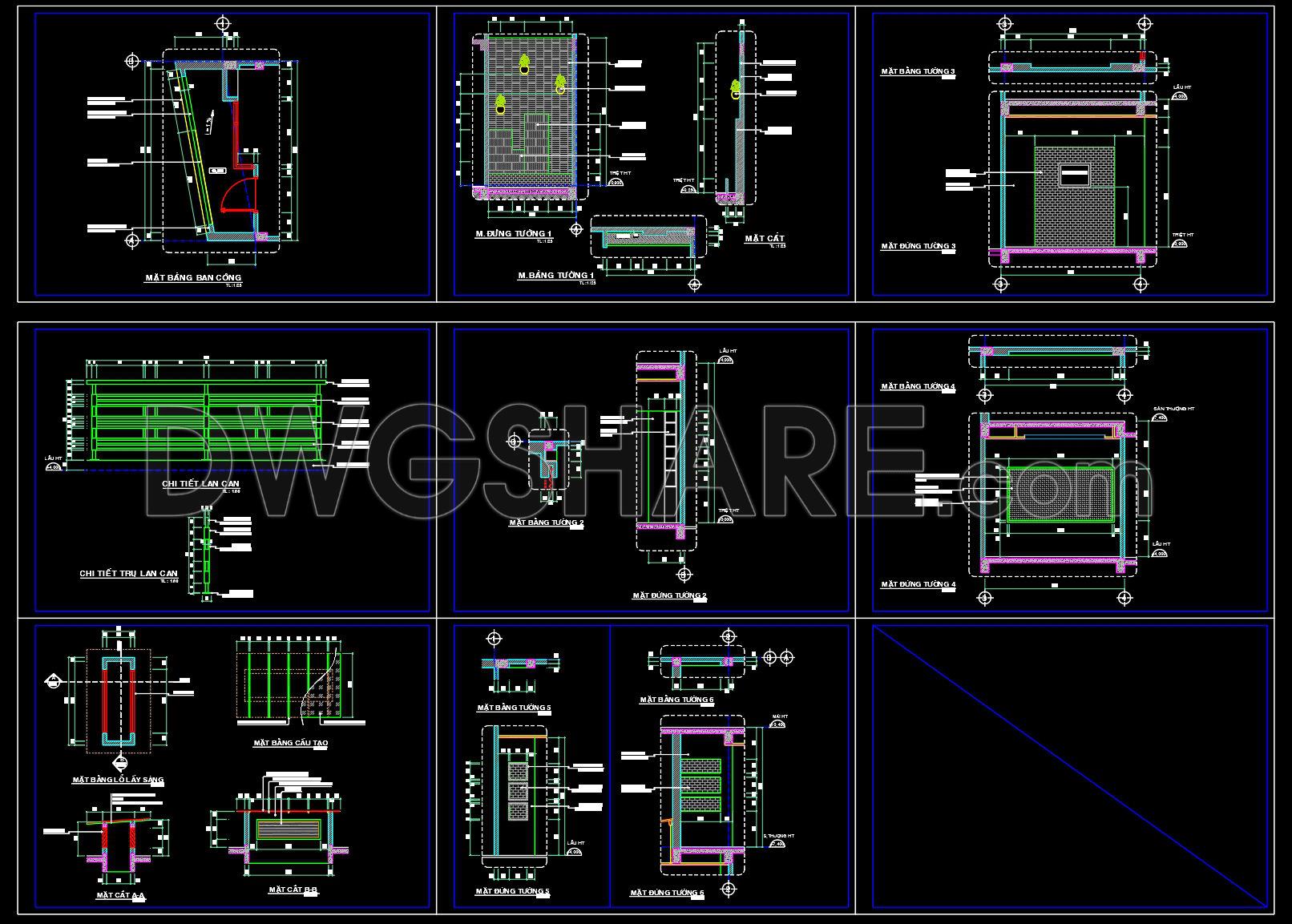 592. Download Detailed CAD Drawings of Balcony Structures, Railings, and Wall Sections