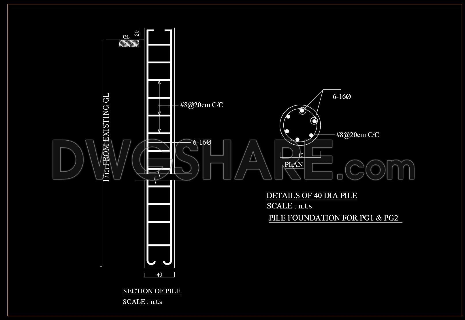The drawing illustrates essential dimensions, such as 40-diameter piles, with reinforcements placed at specific intervals, like #8@20cm C/C. Such precision is crucial for ensuring structural integrity and stability in construction projects. The benefits of utilizing these CAD drawings are vast. They facilitate accuracy, allowing architects to visualize complex designs clearly. The easy editing capabilities enable quick updates, enhancing project flexibility. Moreover, they promote smooth collaboration among various stakeholders, optimizing costs and reducing errors.