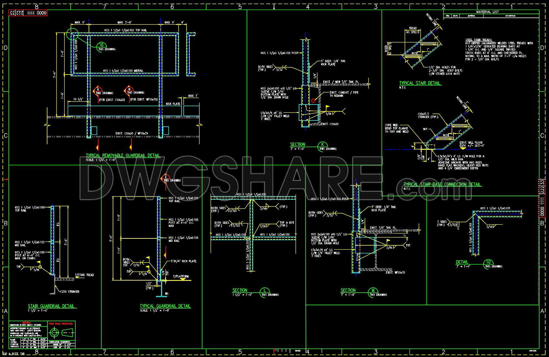 - Stair Guardrail Detail: Highlights the integration of guardrails with stair structures, critical for safety on staircases.