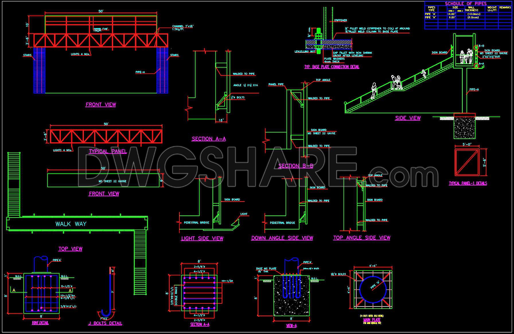 696. Free Download Pedestrian Bridge Double-Sided Signboard CAD DWG