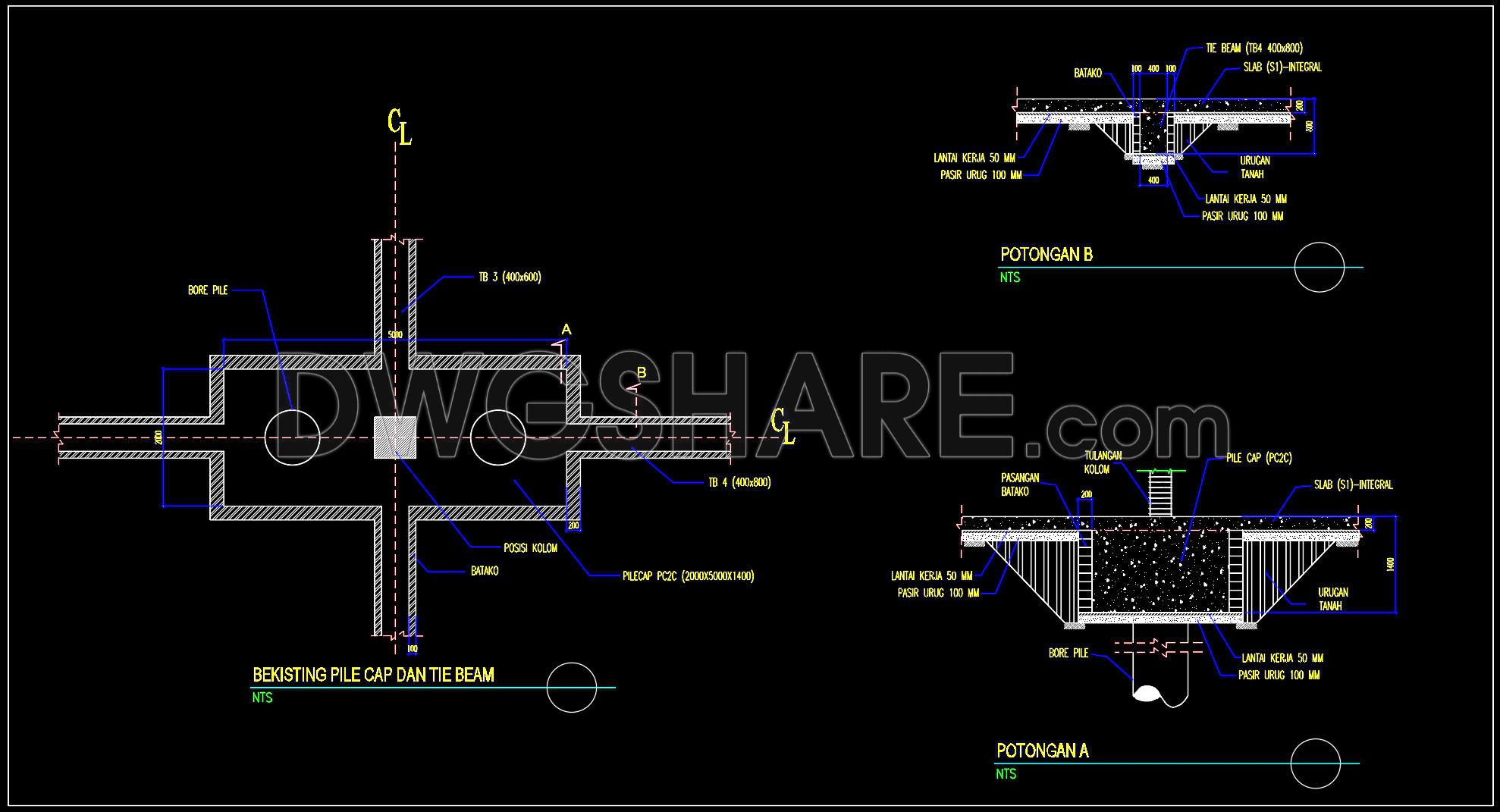 697. Free Download Pile Cap and Tie Beam Details CAD DWG