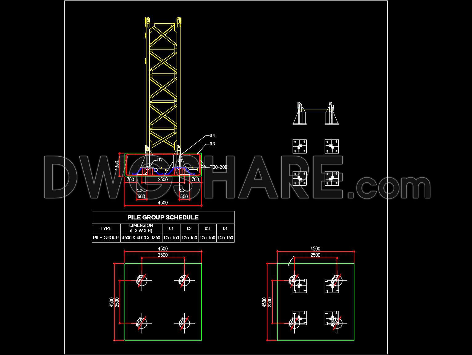 698. Free Download Tower Crane Pile Cap Details CAD DWG
