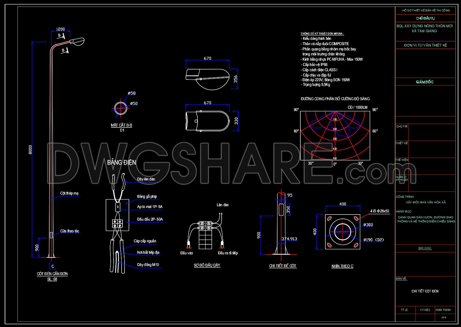 74. Free CAD Download – Street Lighting Pole Detail Drawing