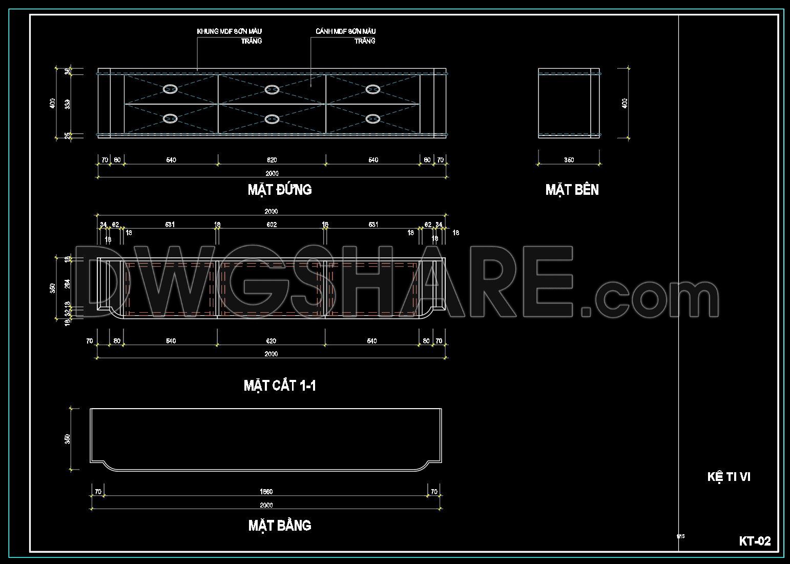 74. Free Download Living Room TV Cabinet 2D CAD Drawing