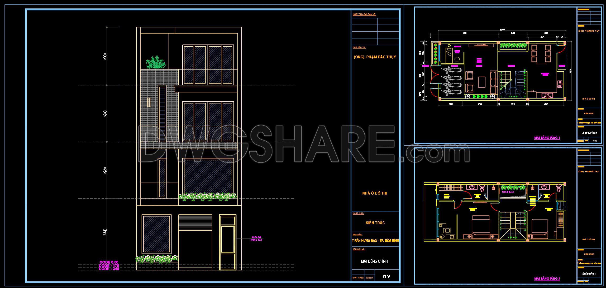 760. Free Download Cad Design Drawings For A 3-story House With Dimensions 5.9m X 12.8m