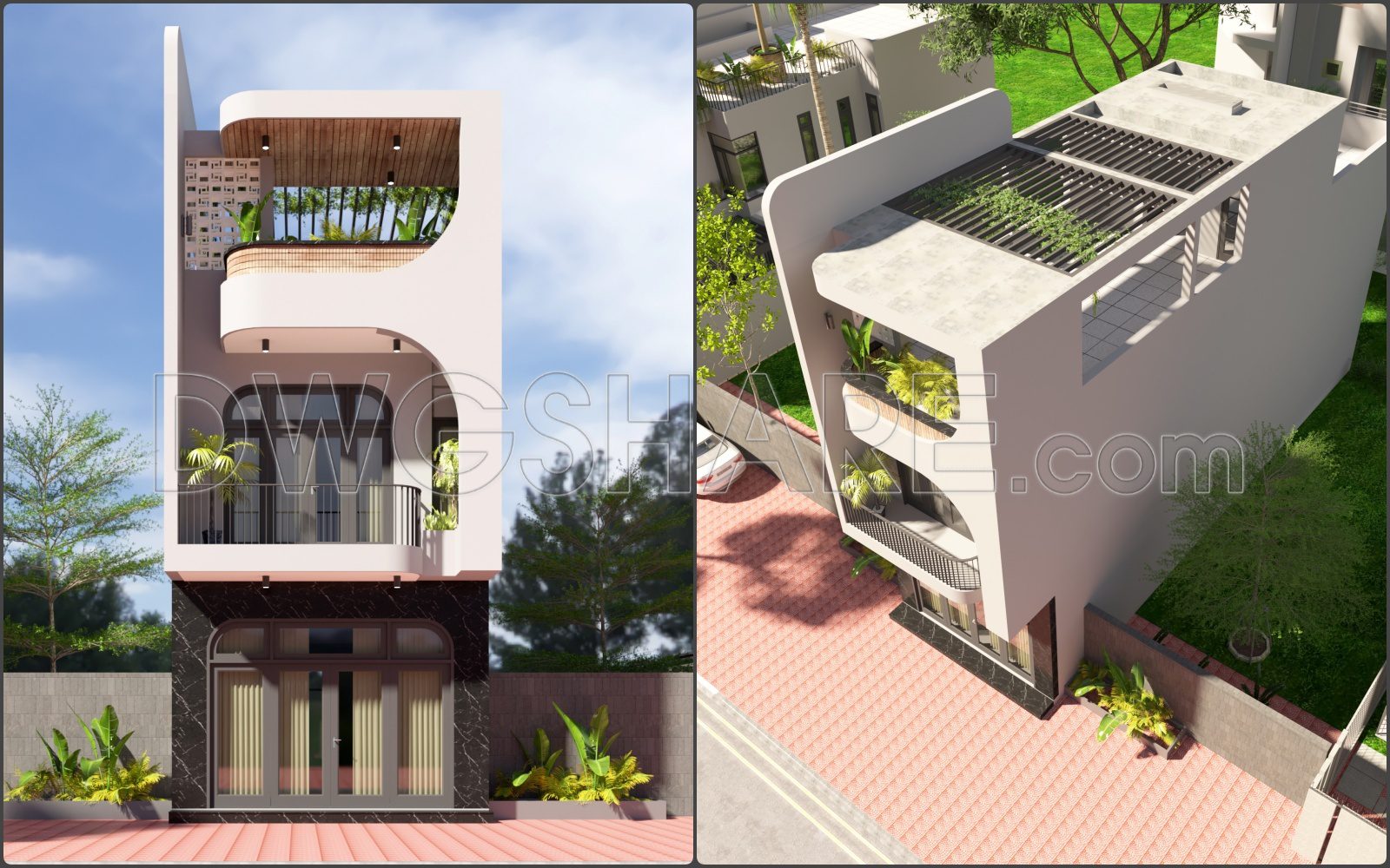 769. Modern 3-Story Townhouse Design Drawings: Curved Architecture & Structure