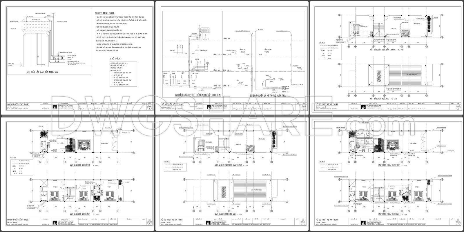 - Plumbing System (Water Supply/Drainage): Includes the schematic diagram, location of water tanks, supply pipes (hot/cold), and drainage pipes for WCs, floors, and the roof.