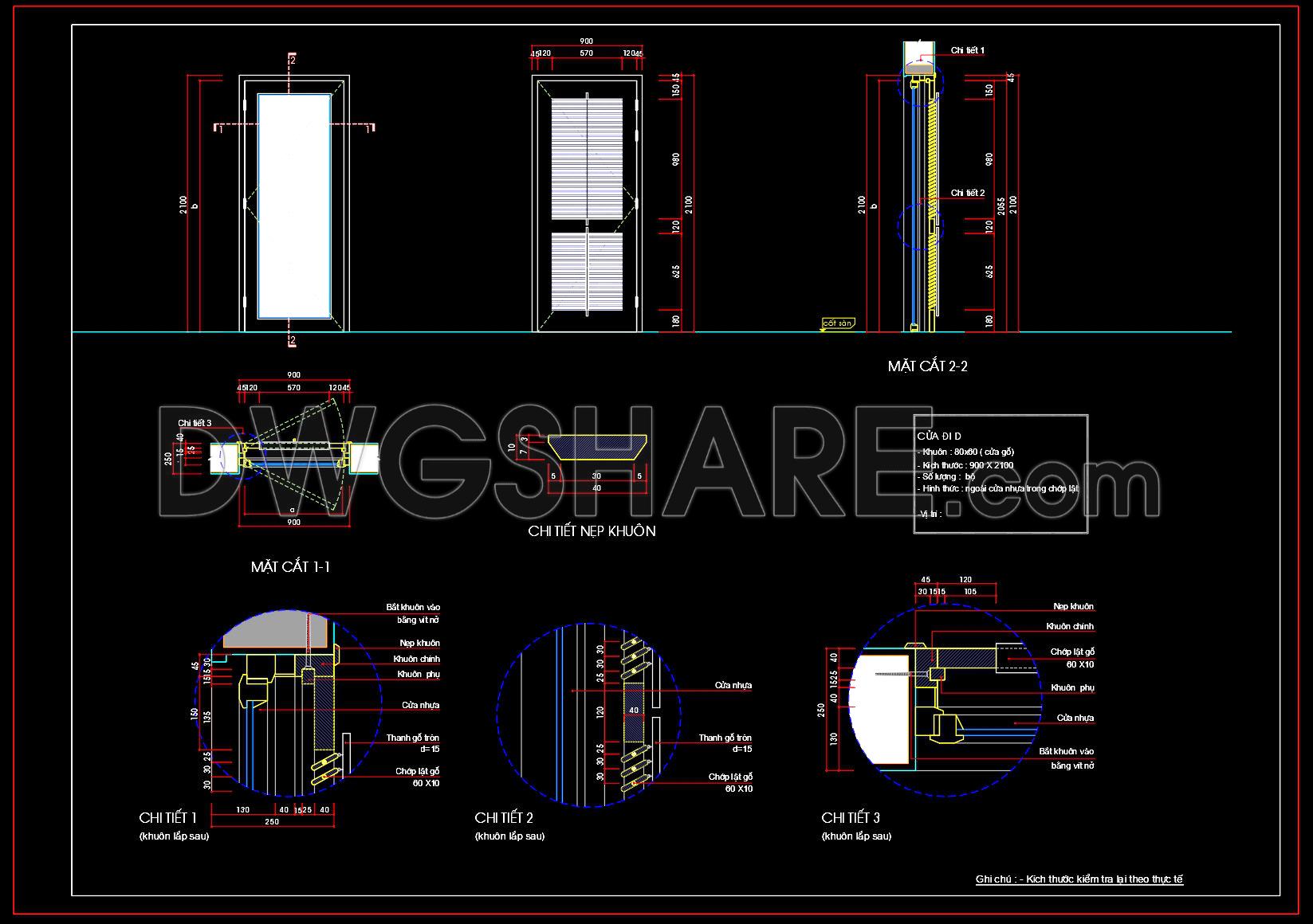 813. Free CAD Drawing – Plastic Panel Glass Swing Door Detail Design (DWG)