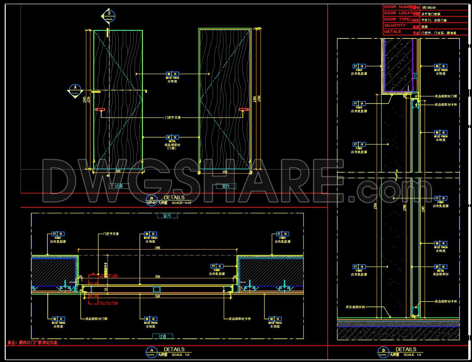 821. Double Swing Door Detail – Construction Sections and Technical Drawings AutoCAD (Free Download)