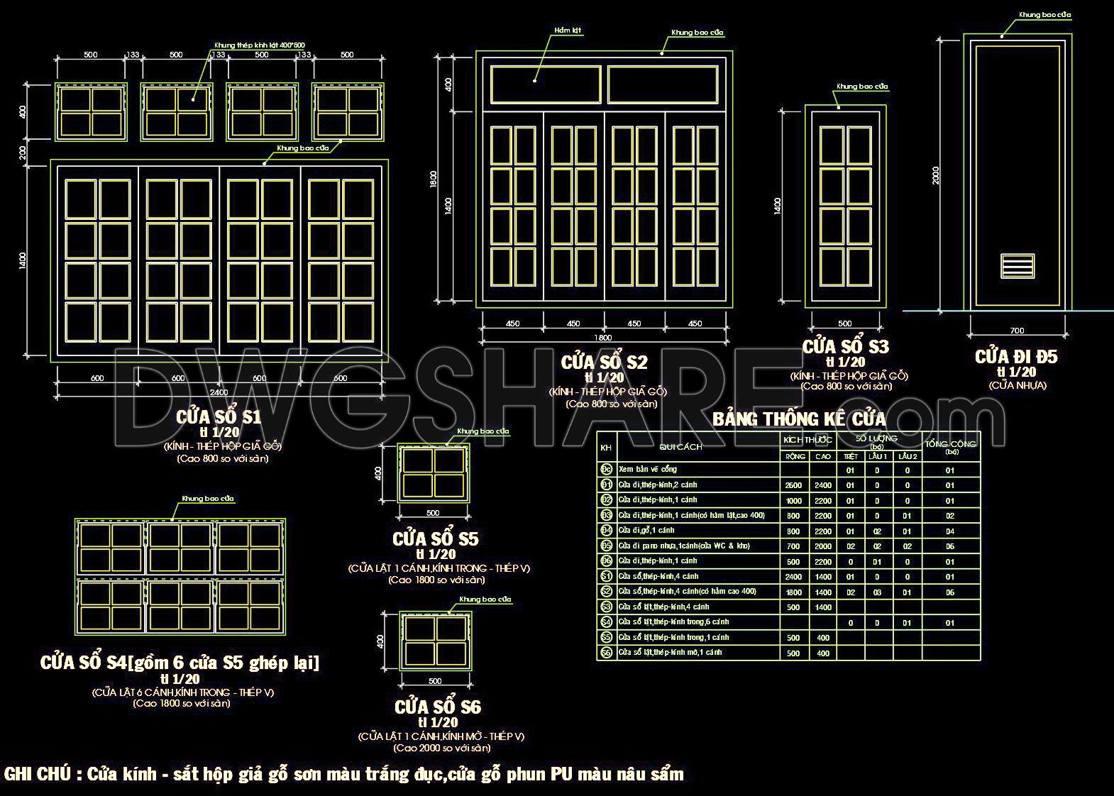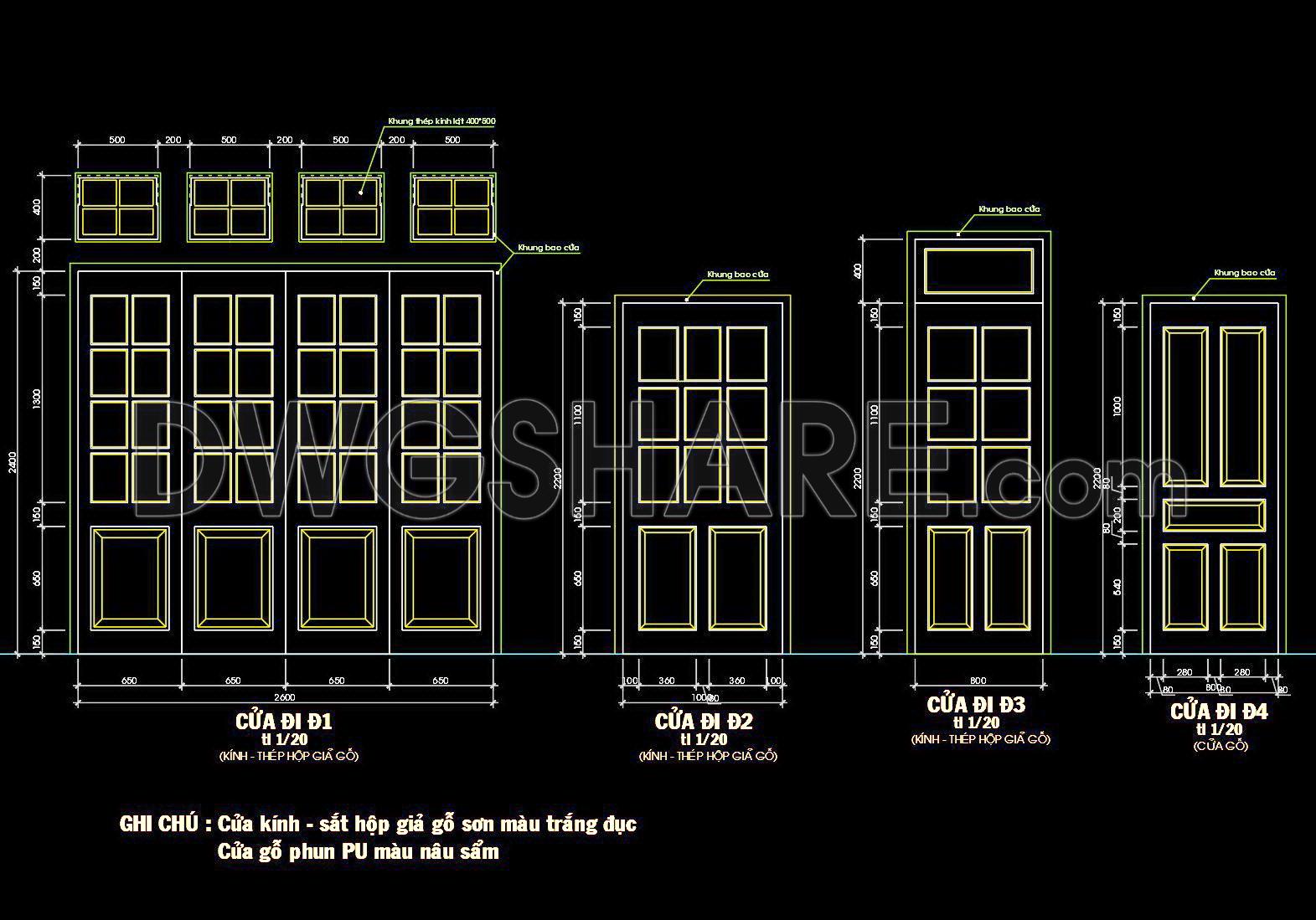 827. Free download CAD drawings of doors and windows for residential houses