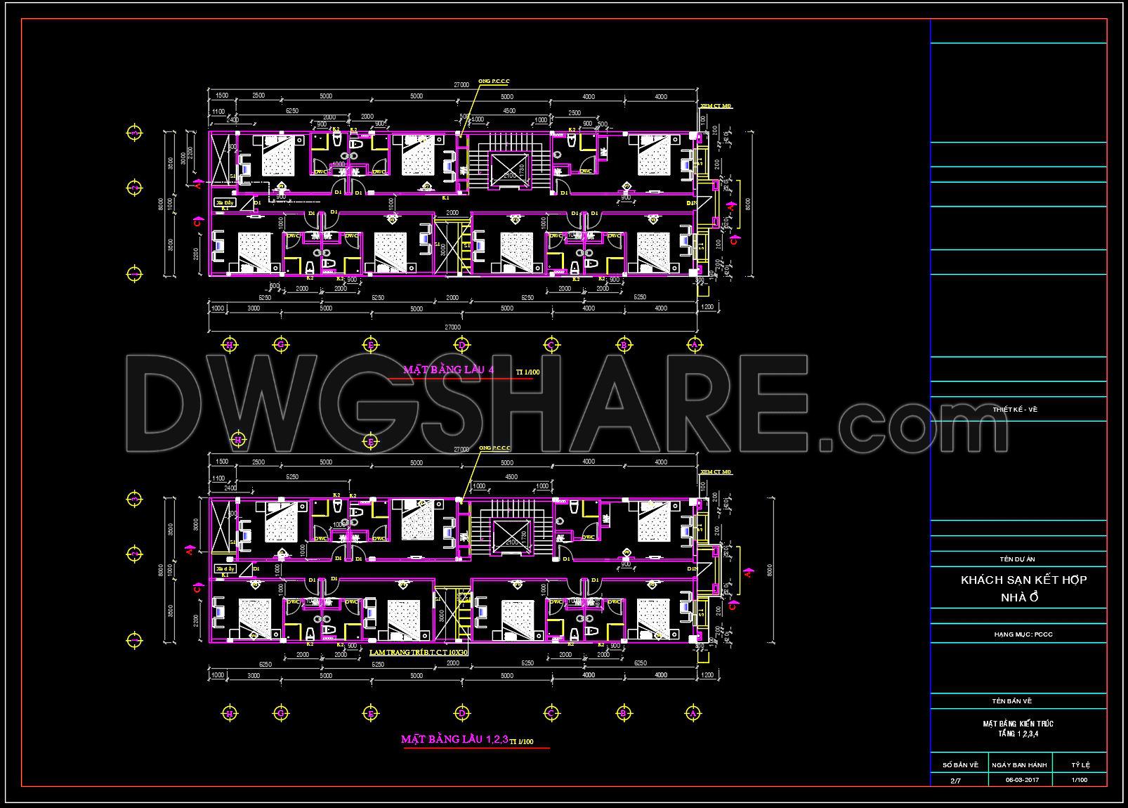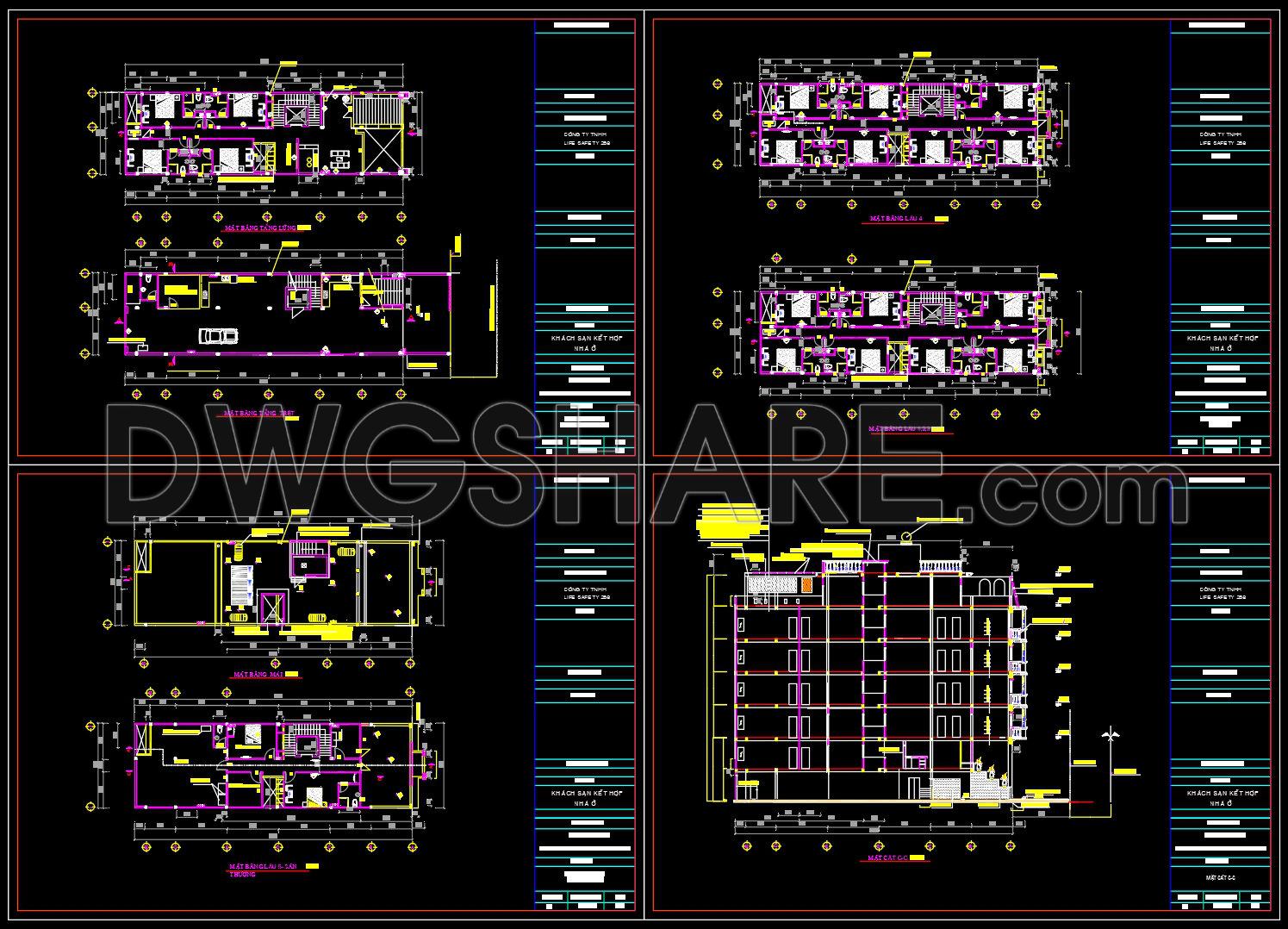 846. Free CAD Drawings Download for a 5-Storey Mixed-Use Hotel and Residential Building