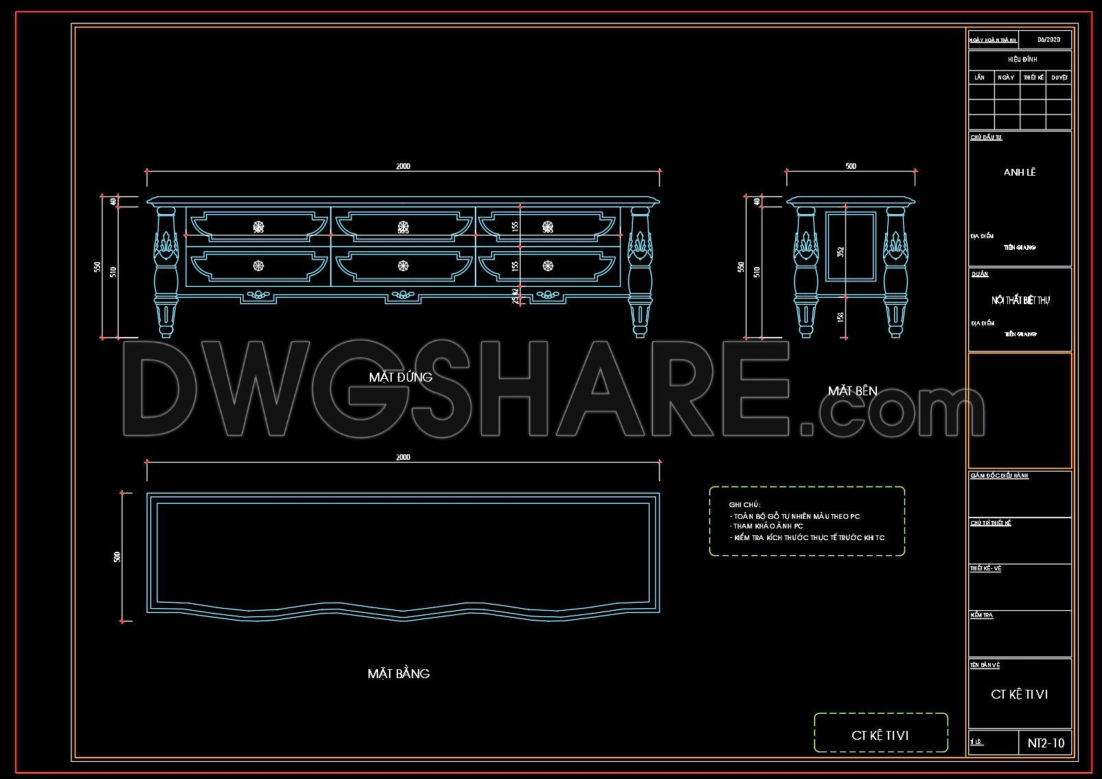 86. Free Download Living Room TV Cabinet 2D CAD Drawing