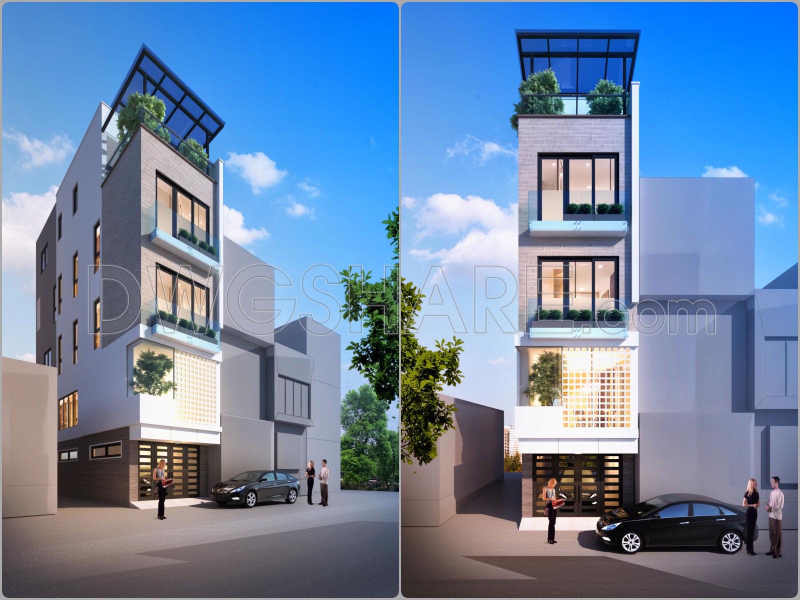 862. Download complete CAD drawings of a 5-storey house (4m x 17.8m) – Full architecture, structure & MEP