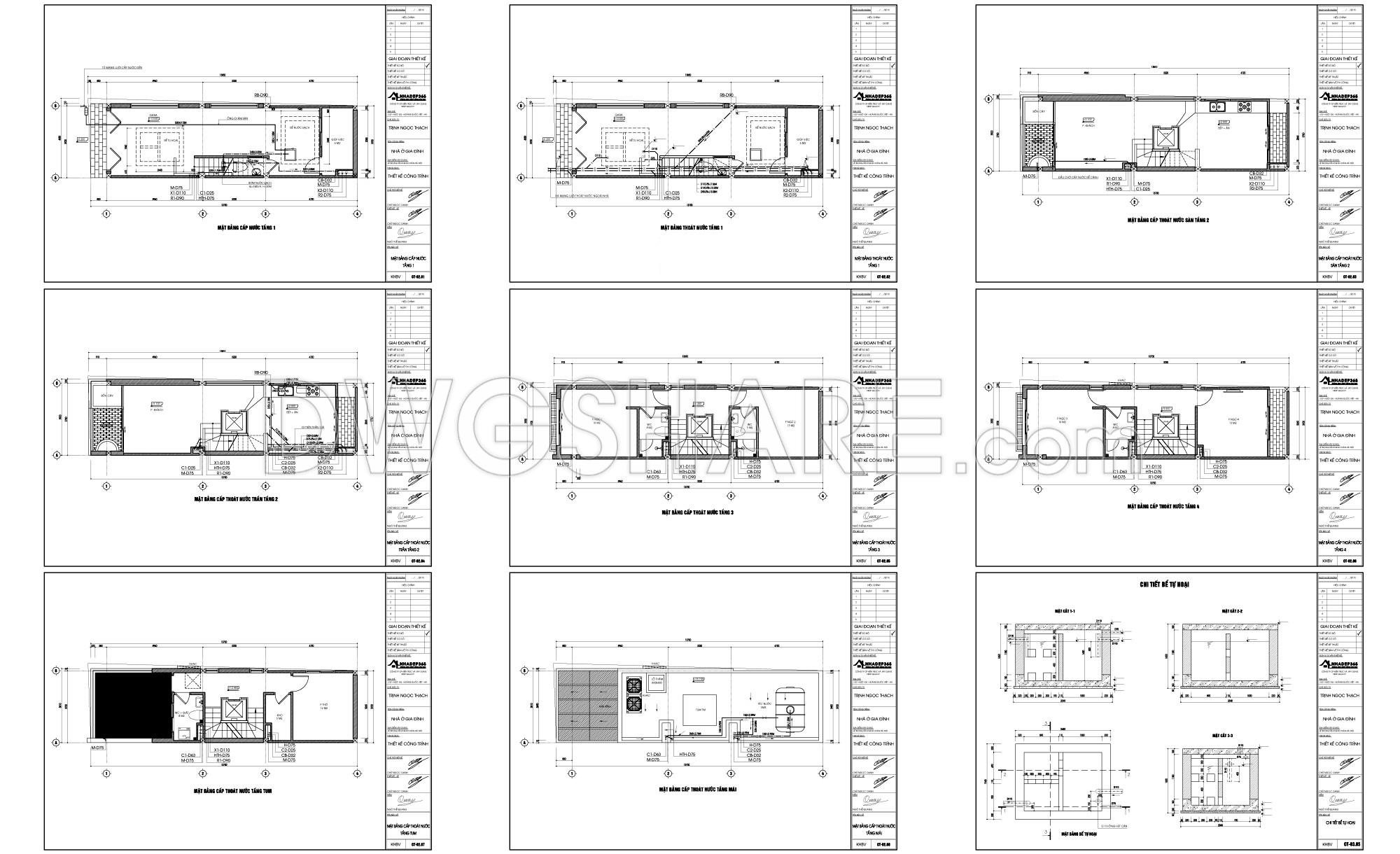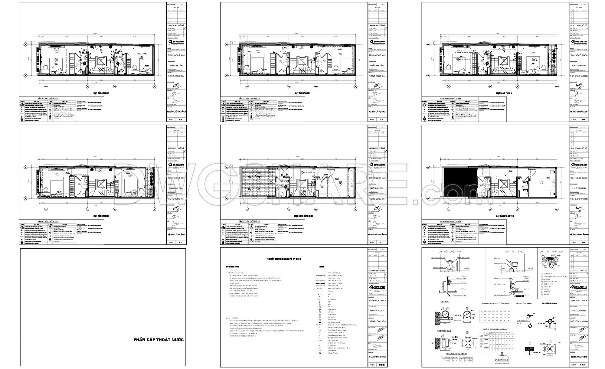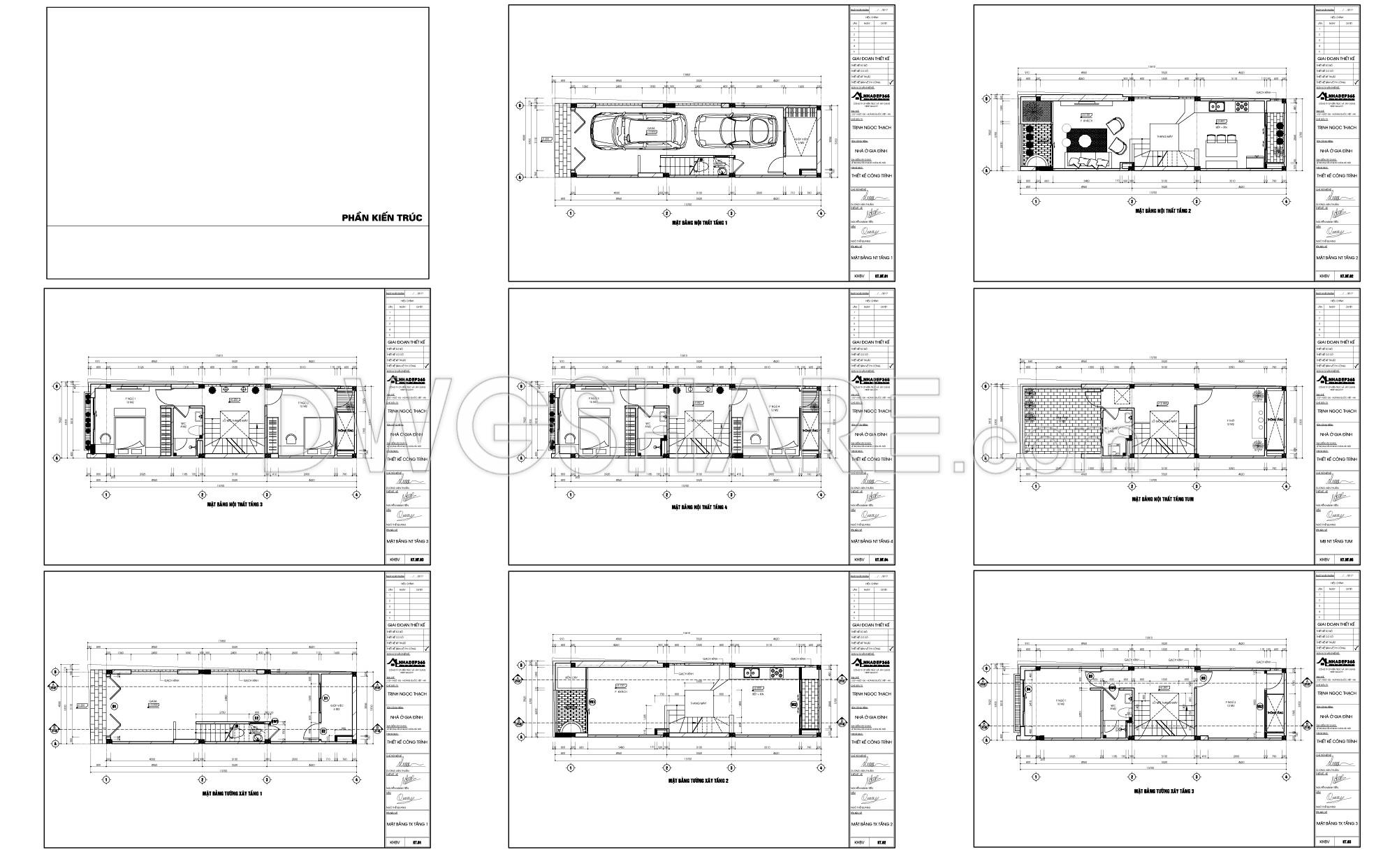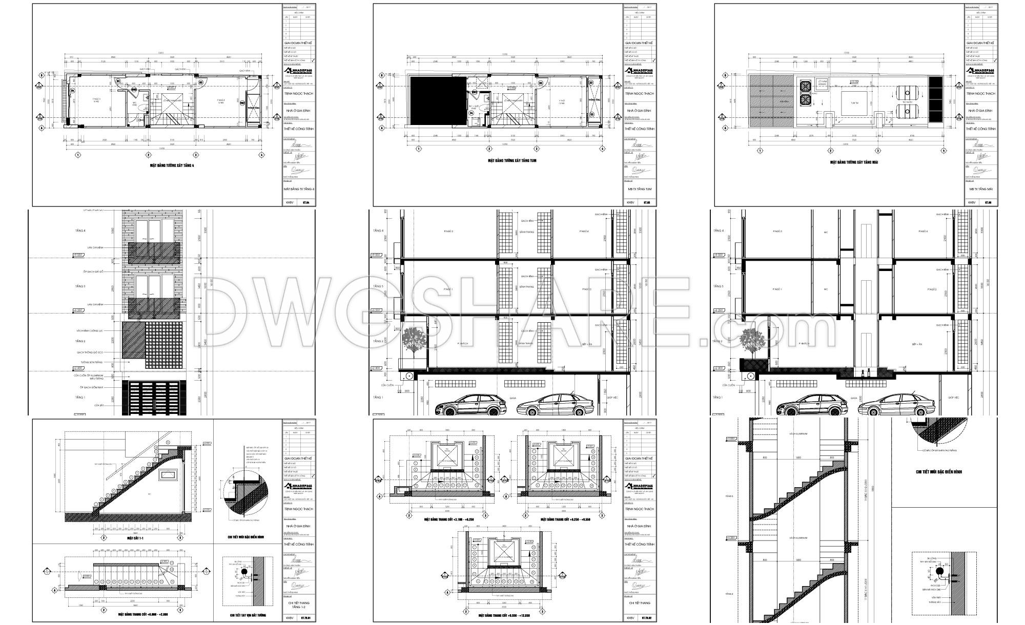 Some drawing sets immediately give you the sense that they’re made for real construction—not just for presentation. This 5-storey townhouse design, sized 4m x 17.8m, falls into that category. It doesn’t rely on flashy forms, but once you go through the drawings, you can feel the maturity of the designer: careful calculations, controlled decisions, and a clear focus on how people will actually live in the space.