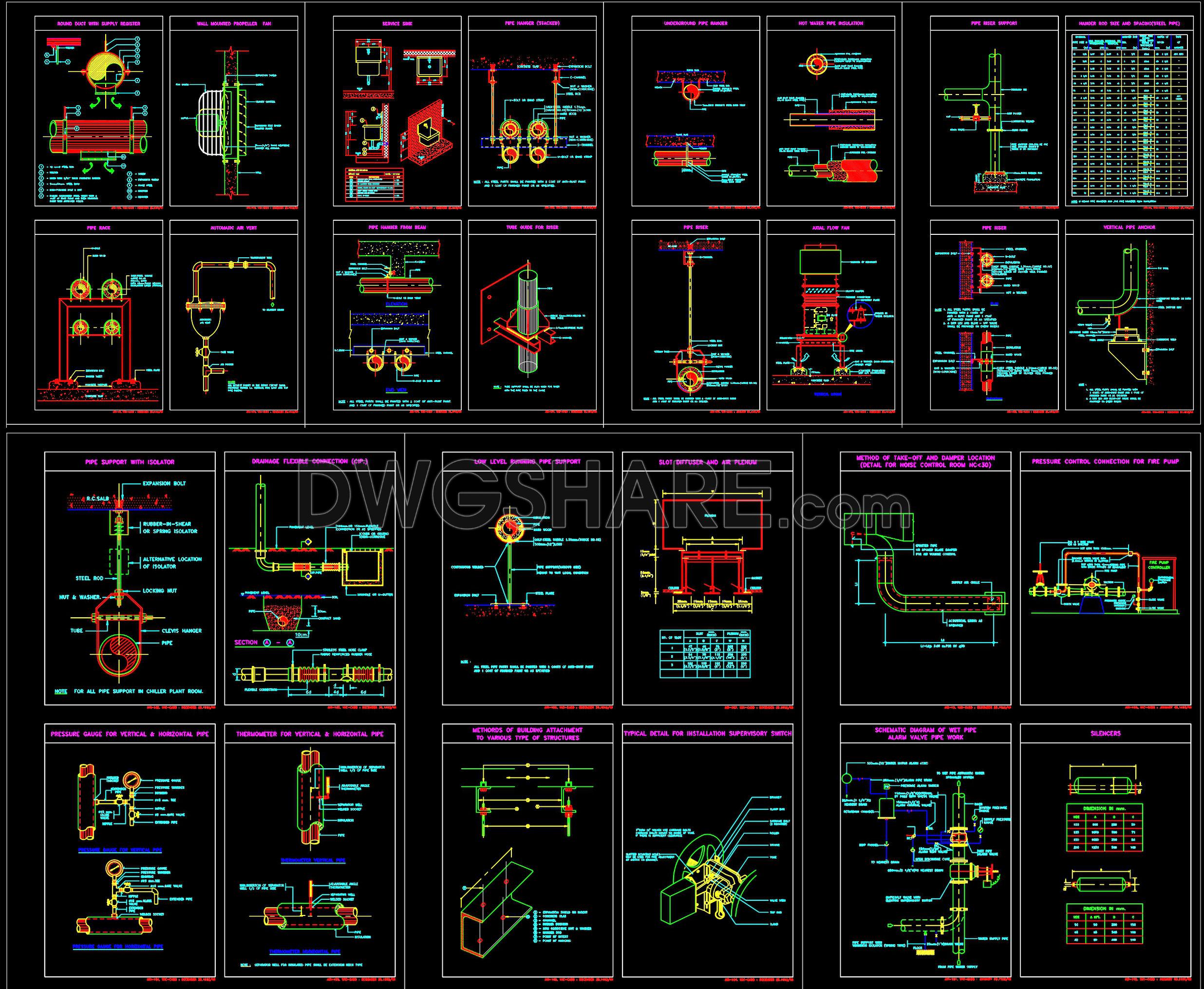 87. Free Download MEP Typical Details for HVAC, Plumbing, Firefighting, and Piping Support Systems