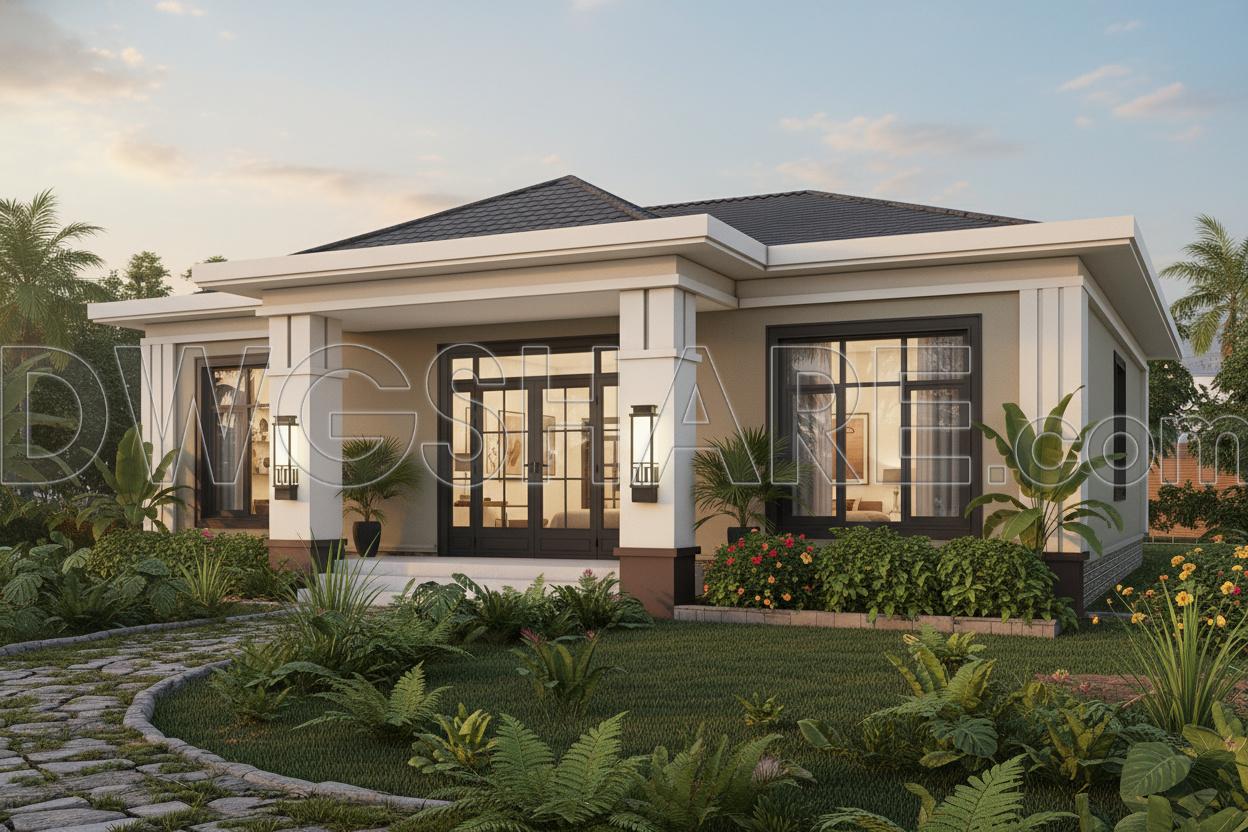 Looking at this set of drawings as a whole, it’s clear that this is a well-thought-out single-story house design, focused more on practicality and ease of construction than on overly decorative elements. With an area of around 130m², the layout is efficiently organized—nothing excessive, but more than enough to meet the needs of a typical family with three bedrooms.